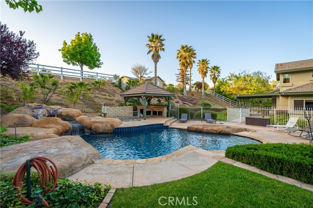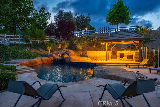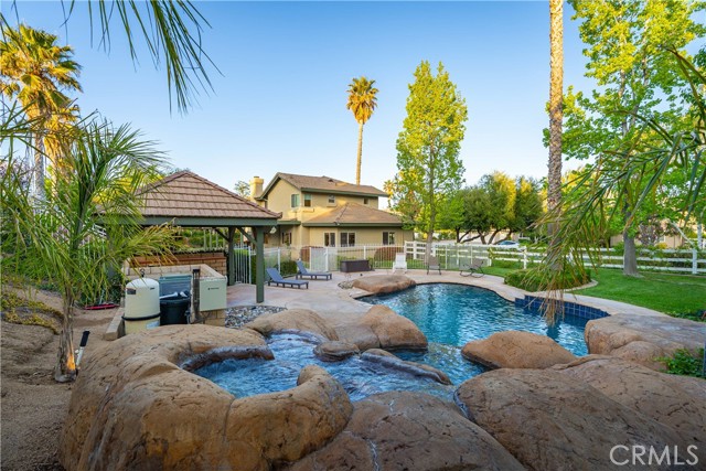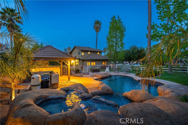 Breathtaking Estate in One of Acton’s Most Desirable Neighborhoods Welcome to your dream home where luxury meets country living! Located on paved roads with LA County water and natural gas, this stunning 1.02-acre corner lot is beautifully landscaped and thoughtfully divided into two 0.5-acre sections, easily cross-fenced. The turnkey 4-bedroom, 3-bathroom main house offers 2,891 sq ft with a 4-car attached garage, brand-new doors, side-mounted openers, and a Level 2 – 50-amp EV charger. Inside, enjoy fresh paint, updated flooring, modernized bathrooms, and Milgard double-pane custom windows with a lifetime warranty. The spacious family room features a gas fireplace and brick hearth, while the chef’s kitchen includes stainless appliances and granite countertops, flowing into a formal dining and living area with vaulted ceilings—perfect for entertaining. A downstairs bedroom and full bath offer direct access to your backyard oasis with a resurfaced pool and spa, tranquil water feature, new tile, app-controlled equipment, large cabana with built-in BBQ and outdoor fridge, plus a newly updated patio. Upstairs offers a versatile loft, two bedrooms with an updated bath, and a master suite retreat with a custom walk-in closet, spa-style bath with garden tub, walk-in shower, and dual vanities. Custom bamboo hardwood floors enhance the living areas, with plush carpet in all bedrooms. A separate gated driveway leads to a permitted 3-car detached garage with epoxy flooring, bathroom, and a fully equipped bar—soundproofed and perfect for entertaining or a music studio. Extras include a 50-amp outlet inside, RV hookup with sewer, fully owned 27-panel solar system, room for a barn or arena, mature trees, uplighting, and Wi-Fi irrigation. This equestrian-friendly neighborhood is your chance to enjoy country luxury without sacrificing convenience—no dirt roads, just comfort, privacy, and room to breathe!
