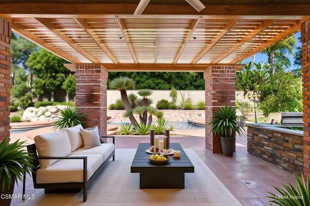 Stunning Morrison Highlands Showplace - Entertainer's Dream Yard + Luxurious Upgrades! Welcome to 29515 Weeping Willow Drive, a beautifully updated and meticulously maintained home located in the highly desirable Morrison Highlands community of Agoura Hills. Set on an approx. 1/3-acre lot, this property offers incredible curb appeal, a resort-style backyard, and upscale interior features ideal for elegant living and entertaining.Exterior highlights include a brick driveway, walkway, and planters, custom garage doors, lush landscaping, and a new roof. Step inside to find soaring ceilings, stone and marble finishes, and a spacious, open-concept layout. The chef's kitchen boasts custom maple cabinetry with pullouts, Viking stainless steel appliances, stone countertops, a wine fridge, and a large center island with vegetable sink -- all opening to a spacious family room with fireplace and French doors leading to a side patio The enormous main suite features coffered ceilings, fireplace, private balcony, and a spa-inspired bath with dual vanities, granite counters, soaking tub, walk-in shower, and a huge walk-in closet with organizers. The entertainer's yard is a true highlight, complete with an oversized pool & spa, waterfall, firepit, two built-in BBQs with stone countertops (one off kitchen for food prep and the other at back patio for entertaining), covered patio, grass area, fruit trees, and multiple outdoor areas for relaxing or hosting large gatherings. Additional Features: New roof and electrical panel, Triple-zone HVAC systemUpdated powder room & hallway bath with custom cabinets and stone counters, Crown molding & custom built-in cabinetry, large formal dining room, Stone/marble fireplace accents, large laundry room with sink, Award-winning Las Virgenes School District. Close to parks, hiking trails, shopping & dining. This is a fantastic opportunity to own a turnkey home in one of Agoura Hills' most coveted neighborhoods!