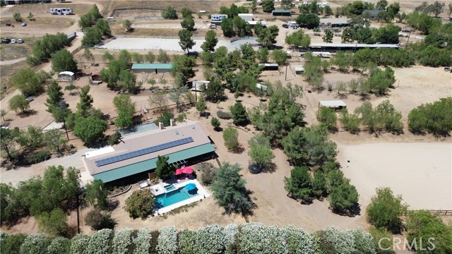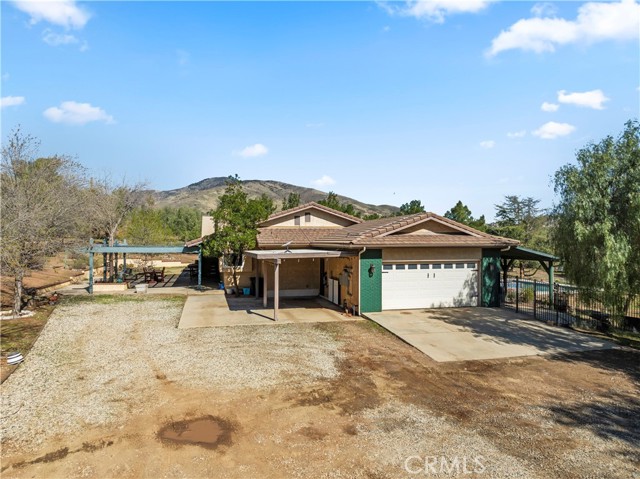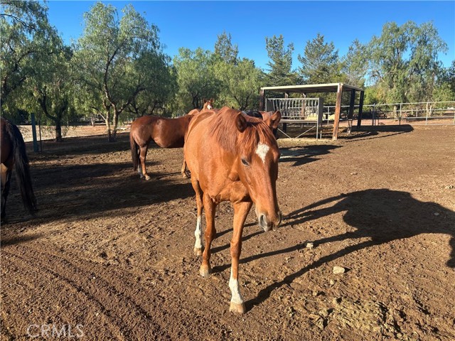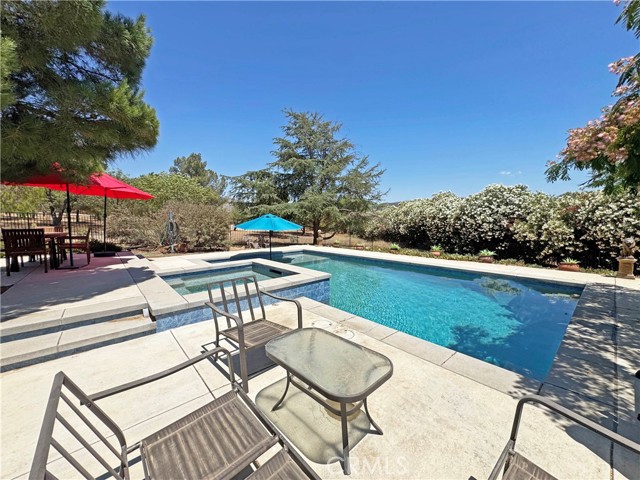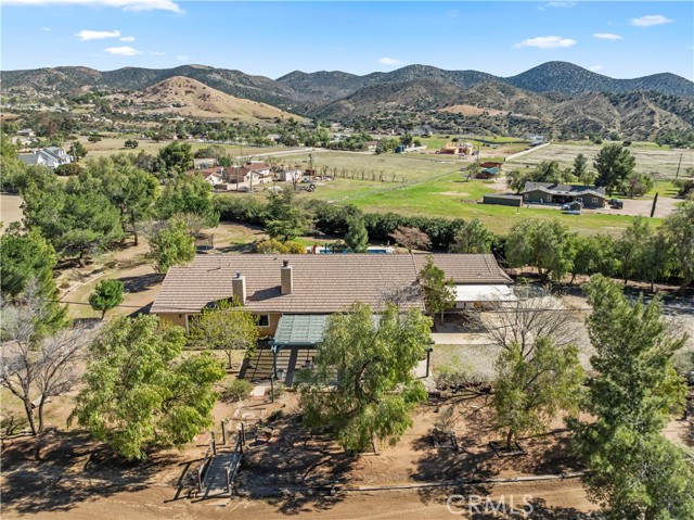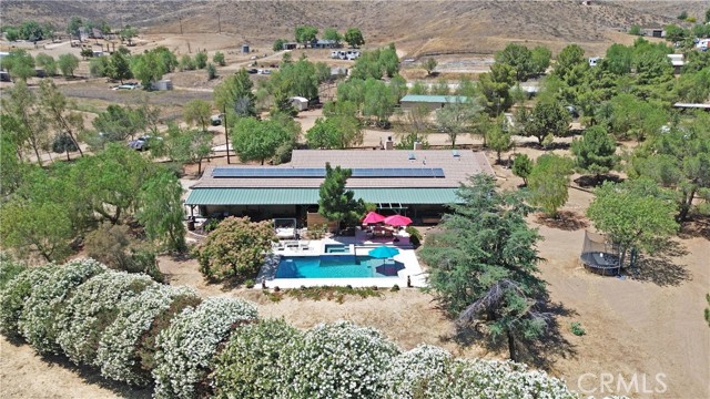 Set on over five acres, this single-story ranch offers country living with modern convenience and features a cottage with built-in shelves, offering incredible potential as a private retreat, office, or future ADU. The property also includes a newer Pebble Tec pool and spa, built in 2023, providing the perfect place to relax while enjoying the peaceful surroundings. Designed with horse enthusiasts in mind, it features a stable with four stalls, a tack room, a separate pen with shelter, a round pen, a large dry lot paddock, and a huge arena with a tree-covered cooling-off walk around it. With direct access to riding trails from both the front and back gates, it’s an ideal setup for equestrian living. In addition, there is a hay shed, chicken coop with run, goat/chicken pen, and tool shed. Inside, the home features two fireplaces, a spacious layout, and thoughtful upgrades throughout. Recent improvements include owned solar, two Tesla Powerwalls, a newer instant hot water tank for the bathrooms, a newer dishwasher, and a newer water purifier in the garage with an under-sink five-stage filter. The garage is finished with laminate flooring, ample storage, and an outlet for electric/hybrid vehicle charging. An electric gated fence completes the property, adding to its functionality. With flat acreage, well-planned equestrian facilities, and modern upgrades, this is a rare opportunity to enjoy spacious country living with all the conveniences of a well-maintained home.