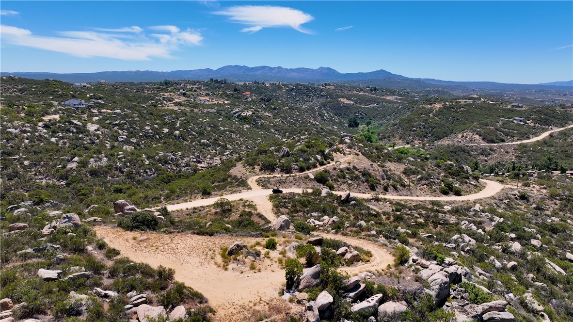3.36 Acre view lot in Beautiful Lake Riverside Estates. King of the hill on this one with spectacular panoramic views of multiple mountain ranges and the valley below. This lot has a pad, water well and has a perc test with septic layout. Located in the foothills at 3500 ft elevation. This community has so much to offer including stocked lake with park, picnic areas, playground, pool, community equestrian center, private airstrip, maintained roads and private security. This community is 30 minute drive to Temecula, 45 minutes to Palm Desert and close by towns of Julian and Idyllwild.