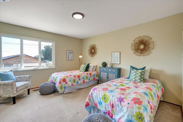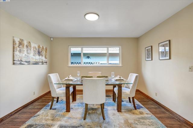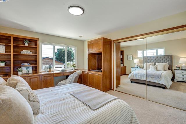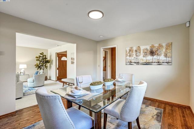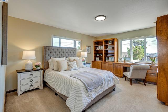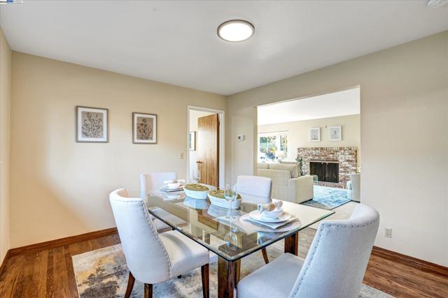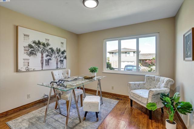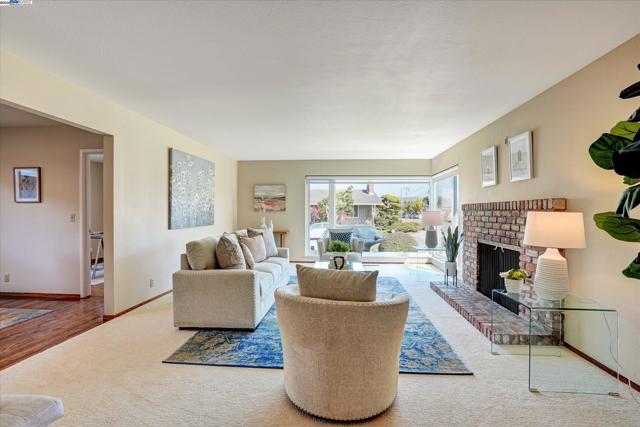 This East End classic, a 1961 Mid-Century Modern 4BR + office, 2.5 bath home in Alameda’s desirable Eastshore neighborhood, perfectly blends period charm with modern comfort. Thoughtfully refreshed for today’s lifestyle, it combines timeless design, generous proportions, and an easy flow throughout its 2,376± sq ft layout. With newly refinished hardwood floors, fresh paint, new carpet, and modern light fixtures, the home feels open, bright, and inviting. A gracious covered entry leads to a vaulted foyer and an expansive living room w/fireplace—perfect for relaxing or entertaining—flowing naturally into the formal dining room & adjoining office. The dining room connects to a large eat-in kitchen w/Subzero fridge and Thermador double oven, plus has abundant workspace. A large step-down den with convenient half bath extends the living space and opens to a private backyard & patio. The primary suite offers ample closet space, a lovely bath, and partial water views. Three additional bedrooms—1 w/partial water views—and a full bath w/shower-over-tub provide plenty of room to spread out. Interior access to the 2-car garage adds ease & convenience. This spacious home sits near Otis & Lincoln Schools, local parks, Encinal Shopping Ctr, and is minutes to freeways, OAK & the SF Ferry.