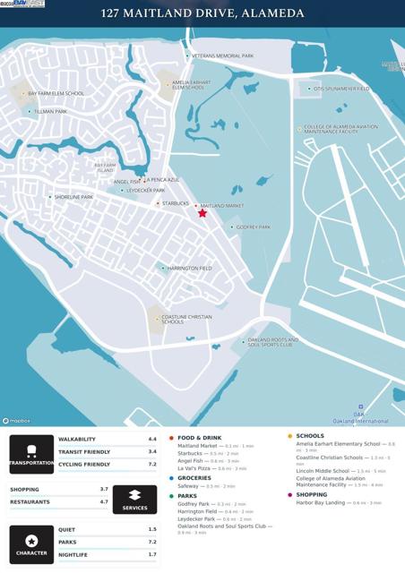 除了房屋基本信息以外,CCHP.COM還可以為您提供該房屋的學區資訊,周邊生活資訊,歷史成交記錄,以及計算貸款每月還款額等功能。 建議您在CCHP.COM右上角點擊註冊,成功註冊後您可以根據您的搜房標準,設置“同類型新房上市郵件即刻提醒“業務,及時獲得您所關注房屋的第一手資訊。 这套房子(地址:127 Maitland Dr Alameda, CA 94502)是否是您想要的?是否想要預約看房?如果需要,請聯繫我們,讓我們專精該區域的地產經紀人幫助您輕鬆找到您心儀的房子。