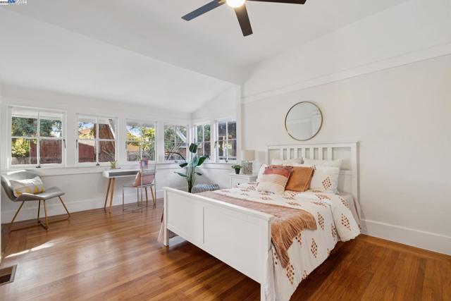 Charming East End bungalow filled with light, warmth and character! Built in 1907, this 3 bedroom, 1 full bath and 1 half bath home offers 1,624 sq. ft. of inviting living space with refinished wood floors and fresh interior and exterior paint. The living room features a wood-burning stove with a newly working chimney, while the dining room showcases wainscoting, built-in shelves, a box-beam ceiling and a Tiffany chandelier. The kitchen includes an eat-in breakfast nook with booth seating and the laundry room conveniently opens to the huge backyard. Two bedrooms and a shared tiled bathroom with a shower-over-tub are located downstairs, while upstairs offers a spacious bedroom, ample storage, and a bathroom with a skylight. Set on a 4,370 sq. ft. lot, the expansive backyard features a prolific lemon tree, a shady redwood and ample space to relax or garden. Additional highlights include a smart thermostat and newer light fixtures and ceiling fans throughout. A curb cut for off-street parking is currently under review with the City. Ideally located near top East End schools, Encinal Market, and Lincoln Park’s pickleball, bocce, and swimming facilities—this timeless home truly has it all! Open House Sat 11/8 & Sun 11/9 2-4pm