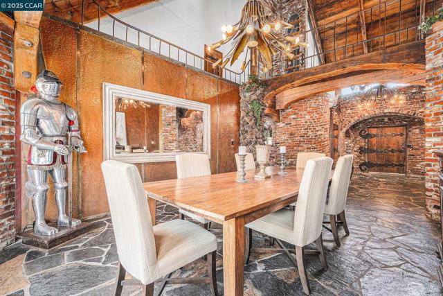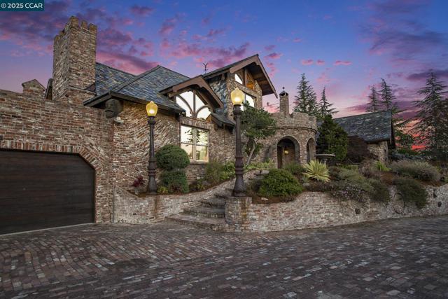 The Castle of Alamo, perched in the foothills of Mt. Diablo, this estate is a rare architectural gem designed for those who appreciate distinction, privacy, and craftsmanship. Evoking the timeless romance of an old-world European manor, this custom-built home blends fairy-tale design with modern amenities, offering a one-of-a-kind living experience just minutes from downtown Alamo and award winning schools. Set on over 2.22 acres of secluded grounds, the home features approximately 4,476 square feet of interior living space with 4 bedrooms, 3 bathrooms, and a series of bonus lofts and flexible living areas that bring charm and function to every corner. As featured in Forbes Magazine, the home's stone exterior, and slate roof immediately set it apart. Inside, soaring ceilings, dramatic staircases, and hand-crafted details create a sense of grandeur. The chef’s kitchen is well-equipped with a Viking gas cooktop, double ovens, a center island, and a cozy breakfast nook with garden views. The spacious primary suite and main living areas are located on the entry level for effortless living, while the loft(s) above adds opportunity for a home office, studio, or private retreat. This is your chance to own what is arguably the most unique property in the entire Bay Area!