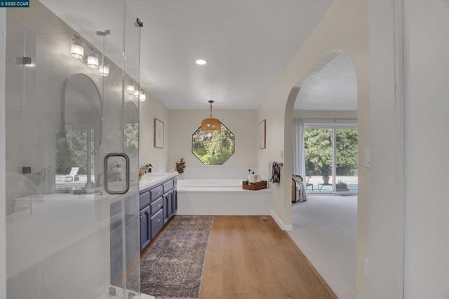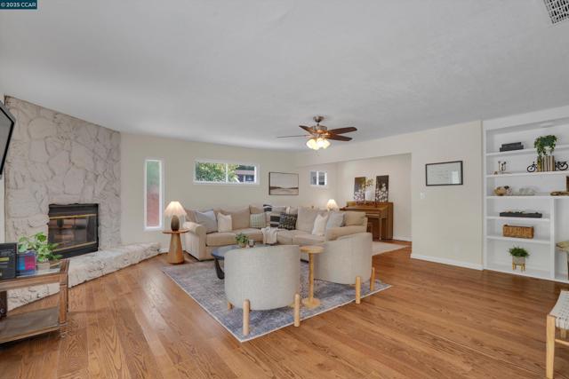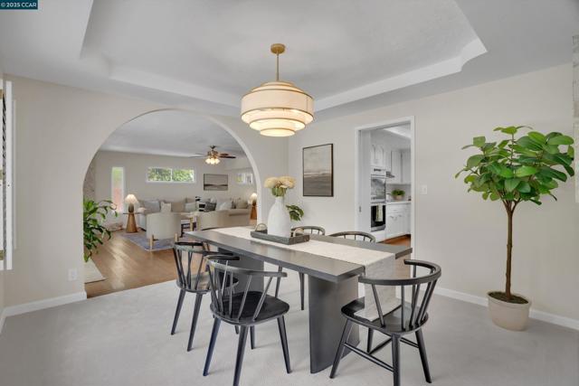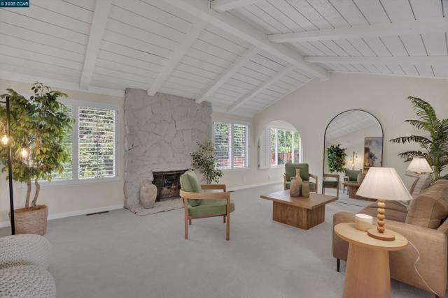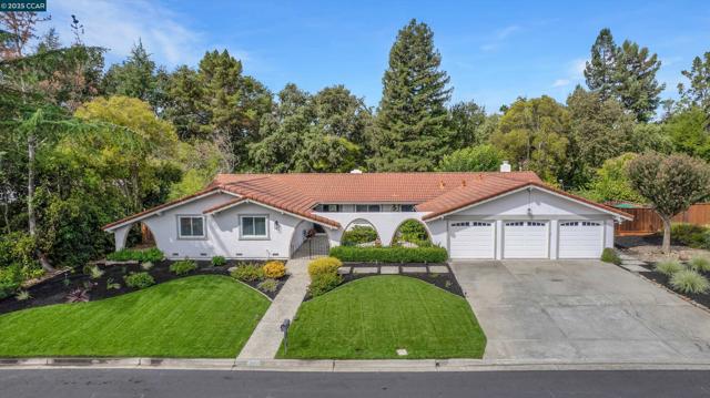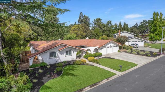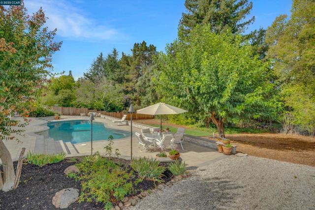 Welcome Home! This charming single-story ranch-style home in Alamo's coveted Roundhill neighborhood offers 3 bedrooms, 2 bathrooms, and more 2,300sqft of comfortable living space on a private half-acre lot. Step inside to a warm and inviting living room highlighted by vaulted, open-beam ceilings and natural wood finishes. Classic hardwood floors blend seamlessly with lush carpet, creating a timeless balance of charm and comfort. The main living space is highlighted by the large family room and connected dining room and rounded out w/the updated kitchen ideal for everyday living featuring modern finishes. A spacious primary suite w/upgraded en-suite bathroom and a luxurious soaking tub - makes it a perfect retreat. Two additional bedrooms provide flexibility for your family or guests. Outdoors, enjoy the best of California living on the expansive 1/2 acre lot. Whether lounging by the large, sparkling pool, hosting gatherings, or enjoying the open space that offers ample opportunity to create your dream yard. This property offers endless possibilities for families and entertainers alike. With its combination of classic character, thoughtful updates, and an unbeatable Roundhill location, this home is a rare opportunity to own in one of Alamo’s most desirable communities.