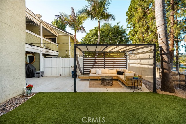 *LARGE OUTDOOR PATIO* *LUXURY VINYL FLOORING* *NEWER APPLIANCES INCLUDING STACKED WASHER & DRYER* *DIRECT GARAGE ACCESS* *SINGLE-LEVEL LIVING* *UPDATED BATHROOM* Discover an incredible opportunity to own a piece of Aliso Viejo’s coveted lifestyle in the exclusive Heather Ridge community. This unique, single-level condo provides a rare blend of comfort, style, and private outdoor living, allowing you to enjoy a premium location surrounded by beautiful homes. Sitting gracefully above the street, this 994 sq. ft. Heather floorplan offers stunning views of the surrounding pine trees and hills. The interior has been thoughtfully updated with beautiful luxury vinyl flooring throughout, giving the spacious living area a fresh, modern feel. Find comfort in two bedrooms and enjoy the renovated bathroom's touch of elegance. The jack-and-jill bath includes a convenient dual vanity with direct access from the primary suite, providing a private and seamless experience. The kitchen is equipped with newer appliances and features a pass-through bar window, perfect for entertaining. For added convenience and security, the personal one-car garage is attached with direct access to the home and features an epoxy-coated floor. Step outside to discover a truly exceptional feature: a large, private outdoor patio complete with a hardscaped area perfect for BBQing, a gazebo for shaded relaxation and a turf yard space. As a resident of Heather Ridge, you'll have access to fantastic amenities, including a nearby sparkling pool, spa and two tennis courts. For the outdoor enthusiast, this home is ideally located near the Aliso and Wood Canyon Wilderness Park, offering over 30 miles of trails for hiking, running, and mountain biking. After meeting your step goal, grab your favorite folding chair and relax at any of the numerous beaches scattered along the coast of Laguna and Dana Point. Enjoy the ultimate convenience with a location that's just a short walk from shopping and dining options just south of Pacific Park Drive. Explore the Marketplace of Laguna Niguel and nearby Plaza de la Paz, where a variety of shops and restaurants await.