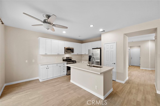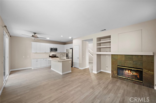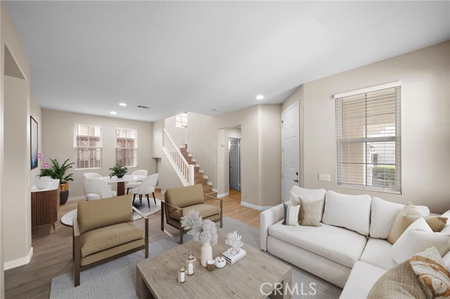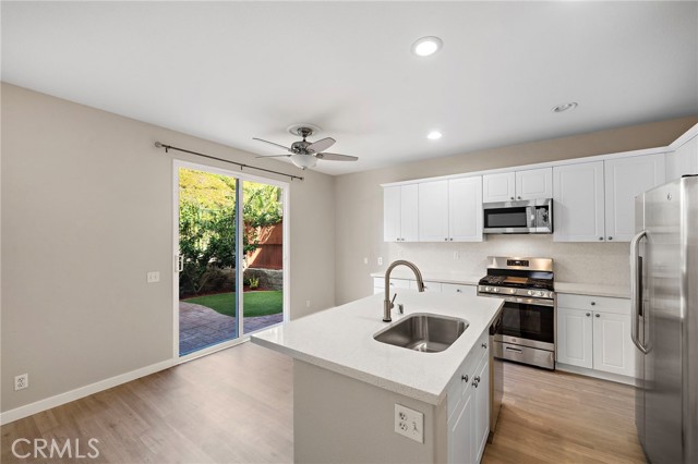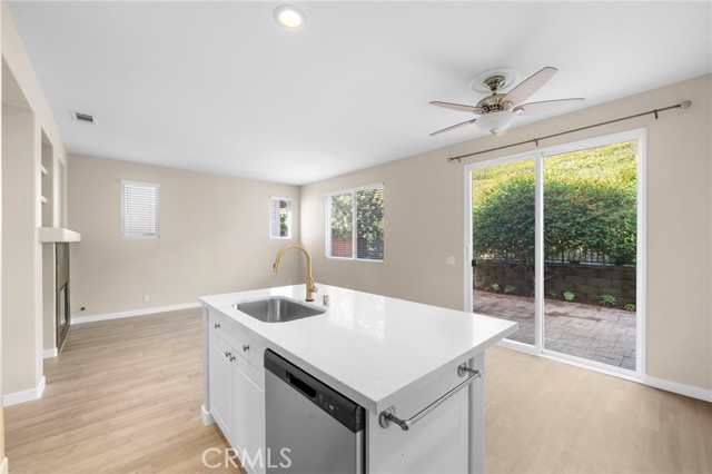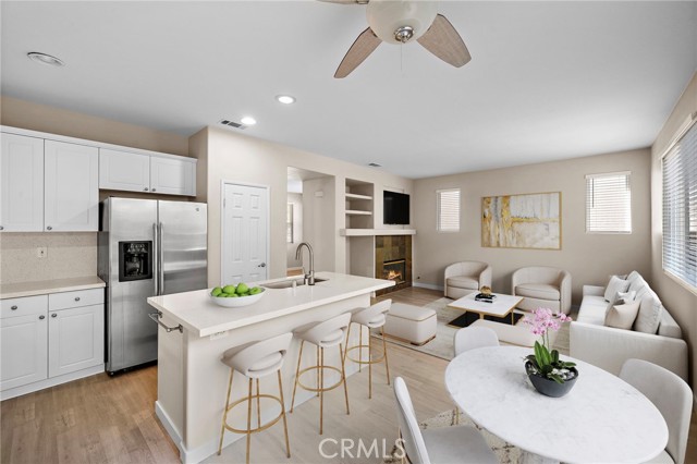 Your dream home awaits! Don't miss out on a great opportunity to own this "rare find" jewel located on top of the hill, comfortably nestled on a quiet cul-de-sac in the highly desired Soleil Aliso Viejo Community. Open and flowing floorplan features: living room dining room combo; beautiful newly installed wood-like vinyl flooring throughout; powder room; family room with fireplace flows effortlessly into a bright and welcoming kitchen with newly installed quartz counter tops, faucet & dishwasher; step out the sliding door and into the private backyard, perfect for entertaining friends and family. Upstairs you will find a large landing with built-in linen cabinets; laundry area; an open loft retreat area perfect for an office, playroom or a 4th bedroom; 2 nice size secondary bedrooms; guest bathroom features shower in tub, dual sink vanity with newly installed mirror & faucet; master bedroom with walk-in closet; master bathroom boasts dual sink vanity with newly installed mirror & faucets, tub and shower. Attached newly painted 2 car garage. Conveniently located to parks, schools, shopping, restaurants, entertainment, canyons, golf, transportation and more!