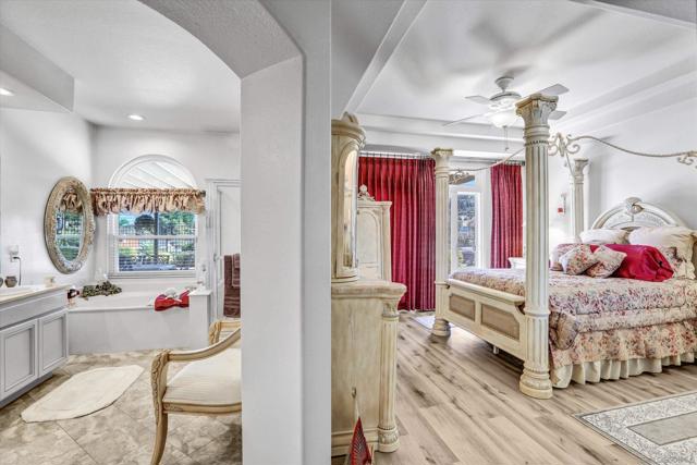 Beautifully maintained & majestically a little above street level to capture a great view all around every room in the house except the two secondary bedrooms. Upgrades throughout! Outside courtyard entry was put in 22 years ago. Heating & air upgraded approx. 12 years ago. Luxury vinyl plank floors installed throughout in 2019. New roof, all exterior painted, and wrought iron fencing installed 4 years ago. Upgraded new windows & new window coverings installed in 2025. All new appliances & cabinets painted throughout in 2025. Counter depth refrigerator remains. Beautiful Blue Pearl granite throughout the kitchen. New quartz countertop, vessel sinks & new fixtures in guest bathroom. Both bathrooms have new toilets. Master bedroom has a recessed ceiling & large walk-in mirrored closet. Two secondary bedrooms have mirrored closets. Solid covered wood patio throughout rear of the house. 3 car garage loaded with cabinets. Custom made goose down couches can remain as window coverings in LR/DR were made with matching material. Thomasville extra-long dining table and china cabinet can remain. 10x10 tool shed on side yard, plus RV parking.