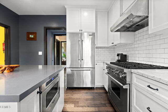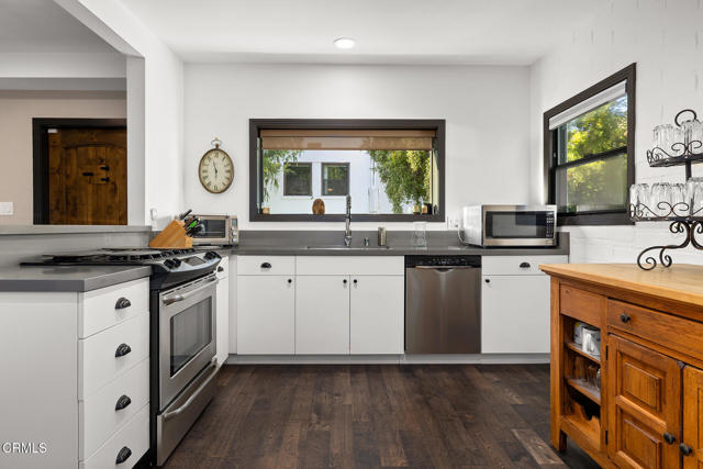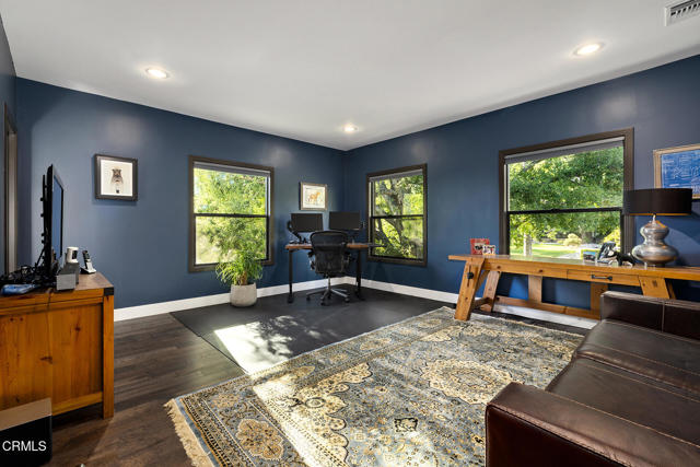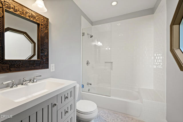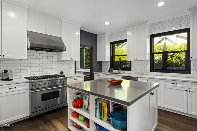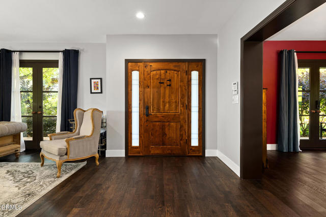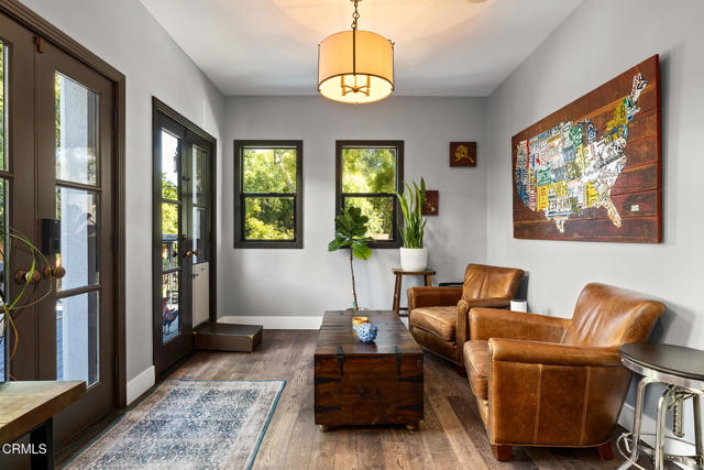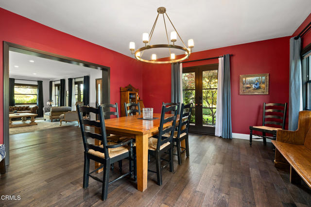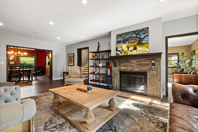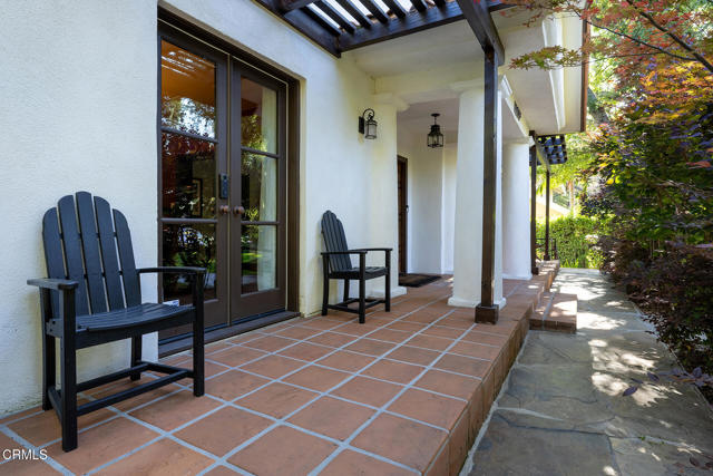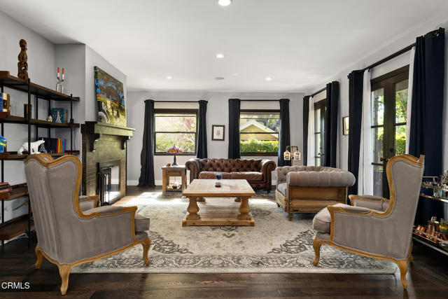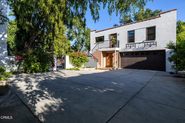 A hidden sanctuary of elegance and privacy, this exceptional gated compound is set on meticulously landscaped grounds and offers a rare opportunity for the discerning buyer. A mini-estate which includes three distinct residences: a stately 4-bedroom, 3.5-bath main home with a spacious family room, a well-appointed 2-bedroom, 1-bath guest house, and an inviting 1-bedroom pool house. The main home is filled with generous proportions throughout and welcomes you with a wide front porch. Inside you'll find a grand formal living room with fireplace, an elegant dining room, and an expansive family room with a second fireplace. The main level is designed for entertaining, featuring a cook's kitchen appointed with marble counters, an oversized center island, a 6-burner Viking stove, butler's pantry, walk-in pantry, and a separate breakfast area. A large guest bath and a laundry room with utility sink and additional storage complete the main level. A wide wooden staircase leads to a large central landing and a nook with built-in bench seating and storage. The primary suite is extremely spacious with a walk-in closet and a luxurious bath with marble hex tiles, dual vanity sink, a free-standing soaking tub, and oversized glass-enclosed shower. Down the hall are 2 oversized bedrooms that share a jack-and-jill bath, along with an additional bedroom suite featuring a double-door entry and private bath. The outdoor spaces are truly exceptional and enhanced with multiple French doors, a flagstone patio and multiple decks, a pool and spa, outdoor fire pit, and outdoor shower. The pool house offers a kitchenette, dedicated bath, and bedroom. Above the 2-car garage and pool house sits a spacious 2-bedroom, 1-bath guest house with its own full kitchen. Additional storage can be found in the massive walk-in basement. Multiple fruit trees and mature landscaping lead you down the long driveway to the motor court and garage area. This expansive compound is a rare opportunity to enjoy elegant multi-residence living in a serene, resort like setting.