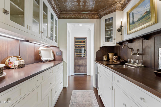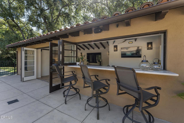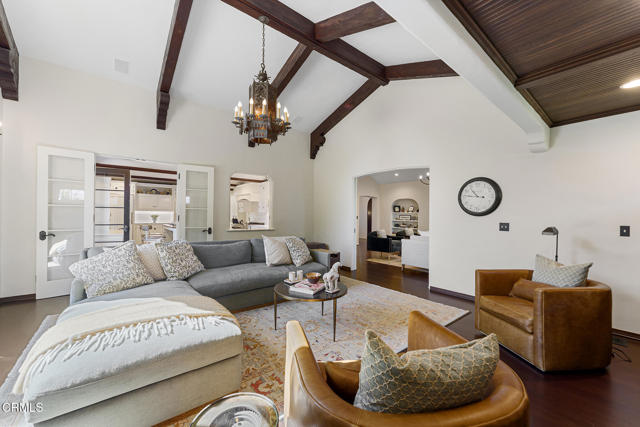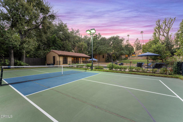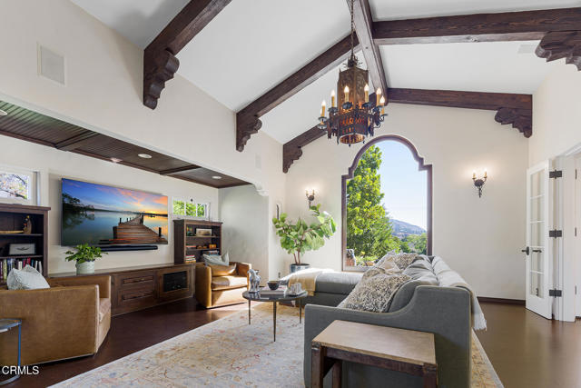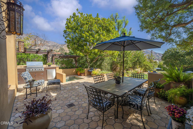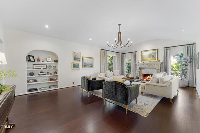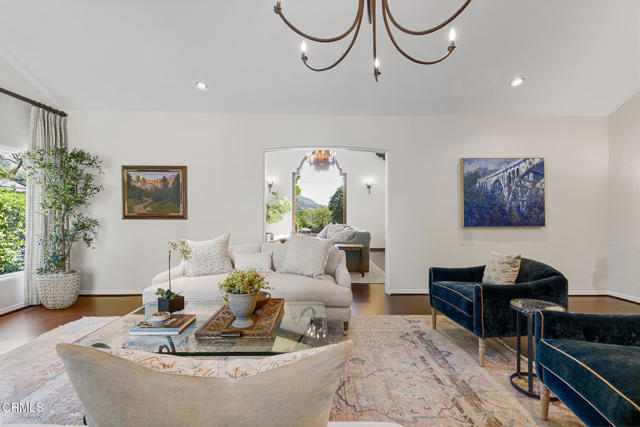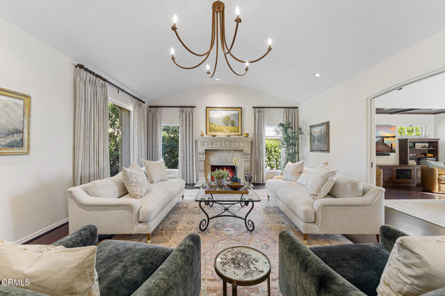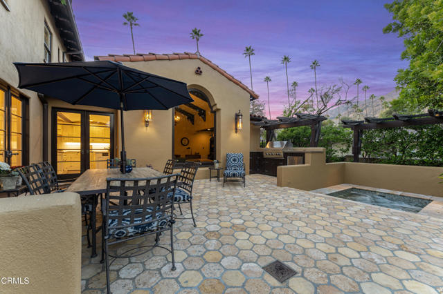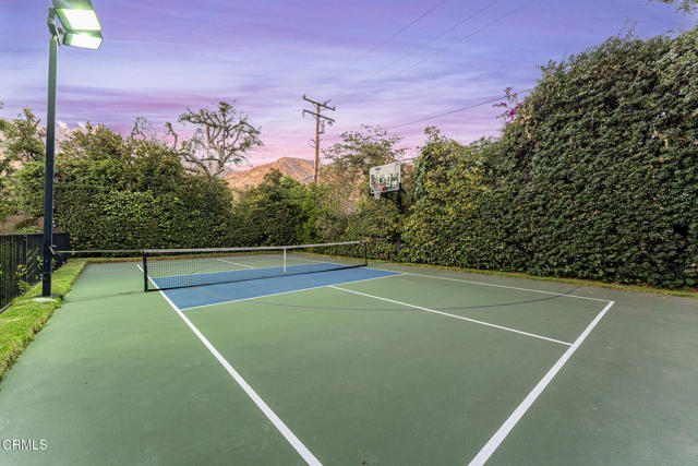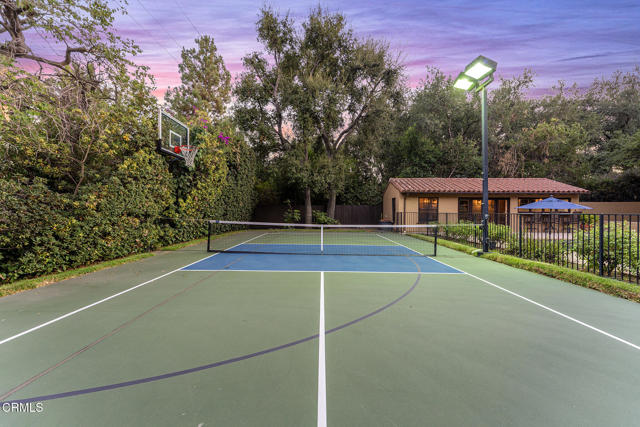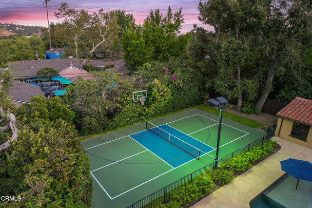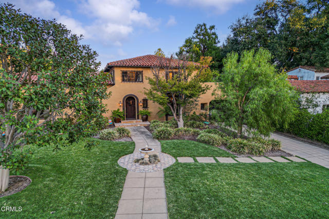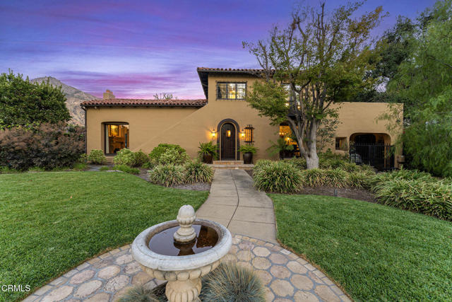 This exceptional 1927 Spanish revival estate is truly one of Altadena's most remarkable properties, offering resort-style living on the highly sought-after Midlothian Drive. Thoughtfully updated by the current owners with impeccable attention to detail and quality craftsmanship, this home seamlessly blends timeless architecture with modern luxury. The main house includes 4 spacious bedrooms with 4 full baths, including a steam shower in the primary bath. The formal living room features a gorgeous fireplace, large picture windows, and built-in bookshelves. Built for large-scale entertaining, the formal dining room showcases French doors and built-ins, all illuminated by a stunning vintage wood-carved chandelier. The heart of the home is the elegant chef's kitchen, featuring marble counters, a walnut center island, Sub-Zero refrigerator and Sub-Zero freezer, Dacor stove, wine refrigerator, and new Miele dishwasher. Enjoy your morning coffee in the separate breakfast room, offering a lovely view of the yard and mountains. The family room features a high-beamed ceiling, built-in bookshelves, and an impressive picture window with breathtaking views of the landscaped rear yard. That's just the main house! Your overnight guests will want for nothing in the 1 bedroom, 1 bath guest house, outfitted with stunning finishes and two Zephyr refrigerators next to the Fisher and Pakel two-drawer dishwasher. French doors and windows open completely to take in the lush landscaping of the rear yard. The property also includes a bonus room/office attached to the rear of the garage featuring two custom wood-paneled refrigerators. Enjoy a stunning array of outdoor amenities, including a newer PebbleTec swimming pool and separate spa, all operated remotely using the Aqualink app. There is no shortage of activity here with a lighted pickleball and basketball court, plus a bocce ball court--all surrounded by lush lawns, mature trees, and beautifully landscaped grounds. Recent updates include solar power, dual-zone HVAC, upgraded copper plumbing and electrical systems, foundation bolting, a Sonos sound system, smart home technology, elegant new window treatments, and exquisite designer light fixtures throughout. This is a rare opportunity to own a heritage home that perfectly captures the Southern California lifestyle--historic charm, modern comfort, and resort-like living in one of Altadena's most coveted neighborhoods.