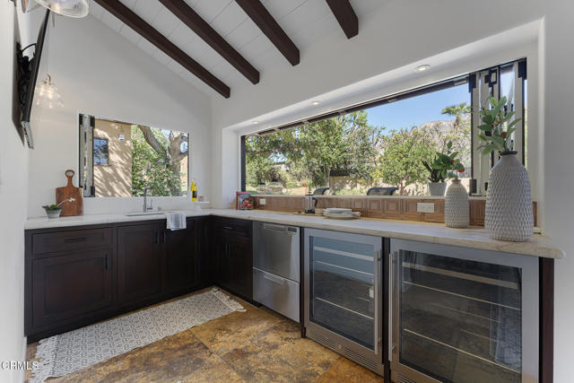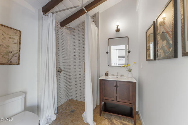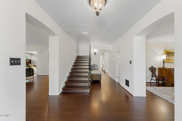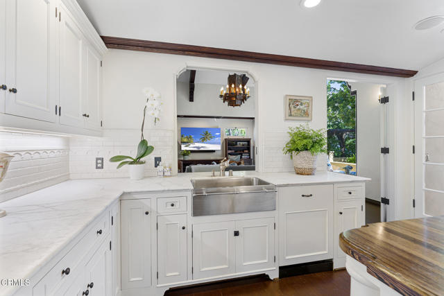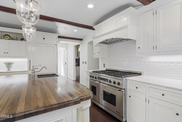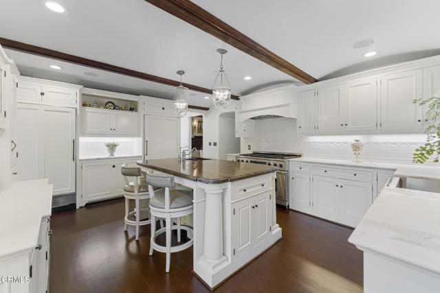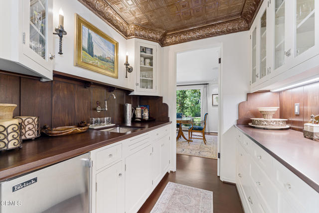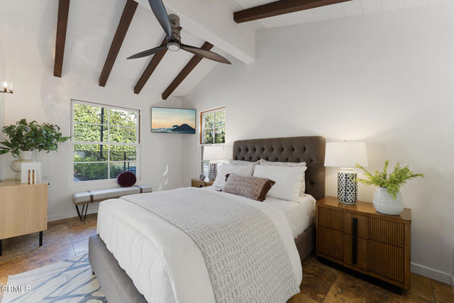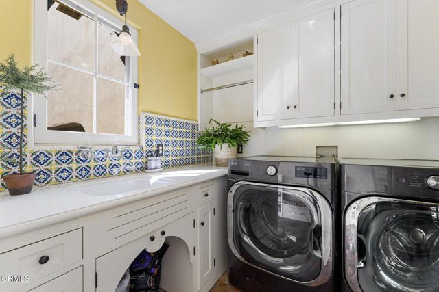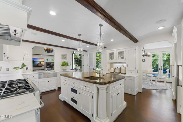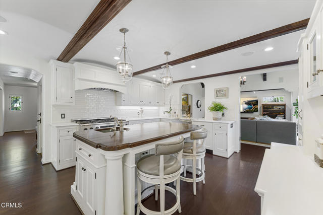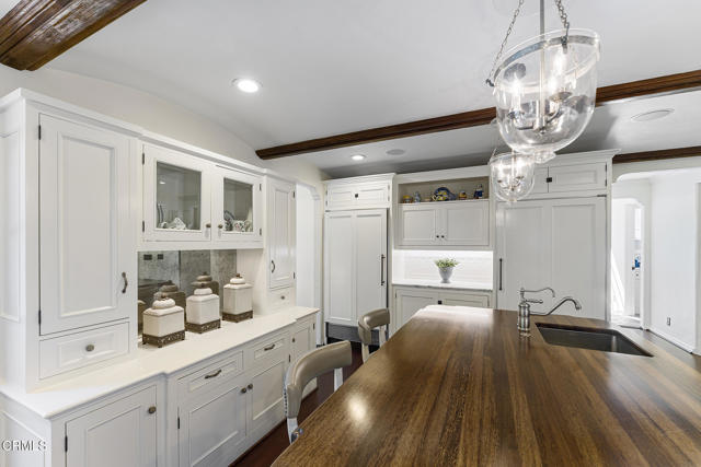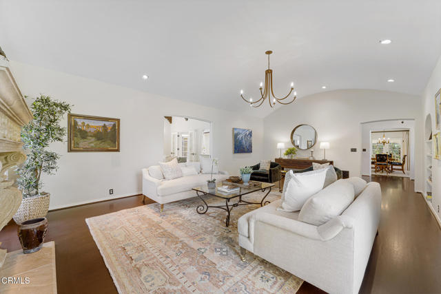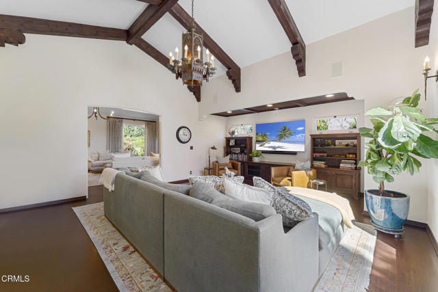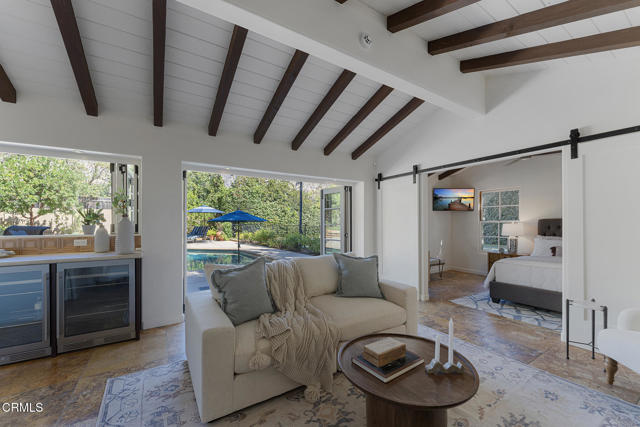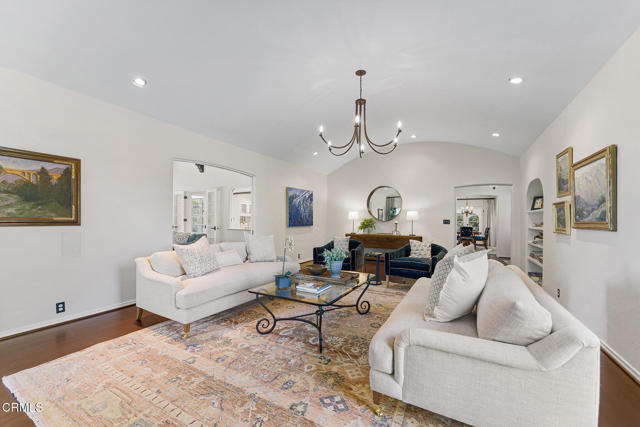 This exceptional 1927 Spanish revival estate is truly one of Altadena's most remarkable properties, offering resort-style living on the highly sought-after Midlothian Drive. Thoughtfully updated by the current owners with impeccable attention to detail and quality craftsmanship, this home seamlessly blends timeless architecture with modern luxury. The main house includes 4 spacious bedrooms with 4 full baths, including a steam shower in the primary bath. The formal living room features a gorgeous fireplace, large picture windows, and built-in bookshelves. Built for large-scale entertaining, the formal dining room showcases French doors and built-ins, all illuminated by a stunning vintage wood-carved chandelier. The heart of the home is the elegant chef's kitchen, featuring marble counters, a walnut center island, Sub-Zero refrigerator and Sub-Zero freezer, Dacor stove, wine refrigerator, and new Miele dishwasher. Enjoy your morning coffee in the separate breakfast room, offering a lovely view of the yard and mountains. The family room features a high-beamed ceiling, built-in bookshelves, and an impressive picture window with breathtaking views of the landscaped rear yard. That's just the main house! Your overnight guests will want for nothing in the 1 bedroom, 1 bath guest house, outfitted with stunning finishes and two Zephyr refrigerators next to the Fisher and Pakel two-drawer dishwasher. French doors and windows open completely to take in the lush landscaping of the rear yard. The property also includes a bonus room/office attached to the rear of the garage featuring two custom wood-paneled refrigerators. Enjoy a stunning array of outdoor amenities, including a newer PebbleTec swimming pool and separate spa, all operated remotely using the Aqualink app. There is no shortage of activity here with a lighted pickleball and basketball court, plus a bocce ball court--all surrounded by lush lawns, mature trees, and beautifully landscaped grounds. Recent updates include solar power, dual-zone HVAC, upgraded copper plumbing and electrical systems, foundation bolting, a Sonos sound system, smart home technology, elegant new window treatments, and exquisite designer light fixtures throughout. This is a rare opportunity to own a heritage home that perfectly captures the Southern California lifestyle--historic charm, modern comfort, and resort-like living in one of Altadena's most coveted neighborhoods.