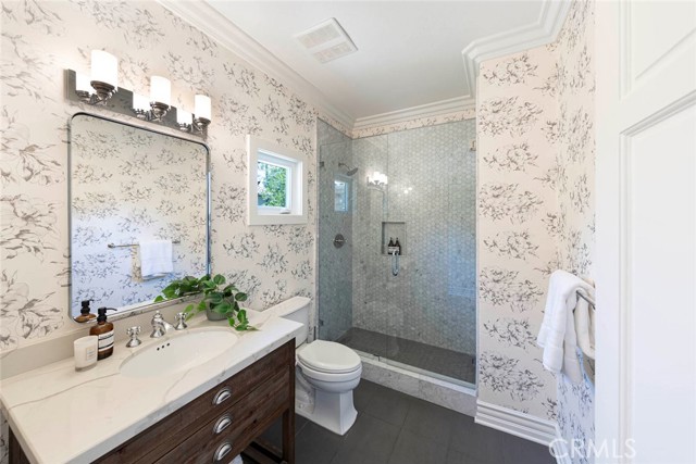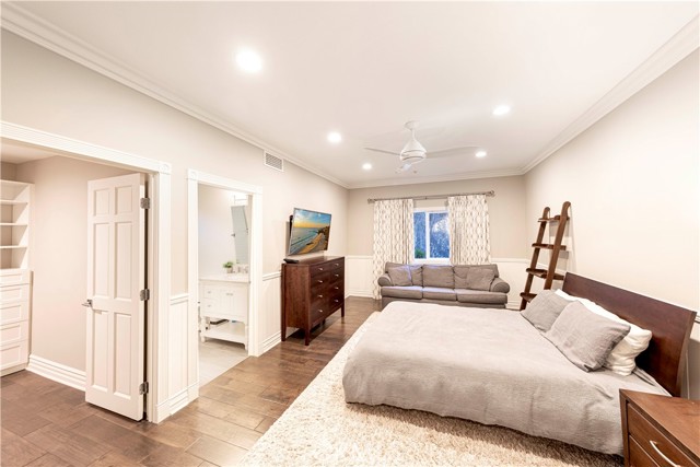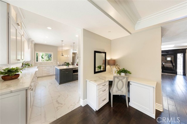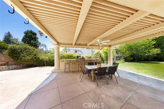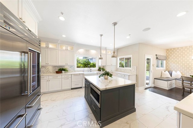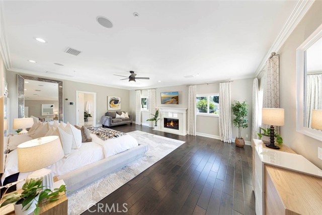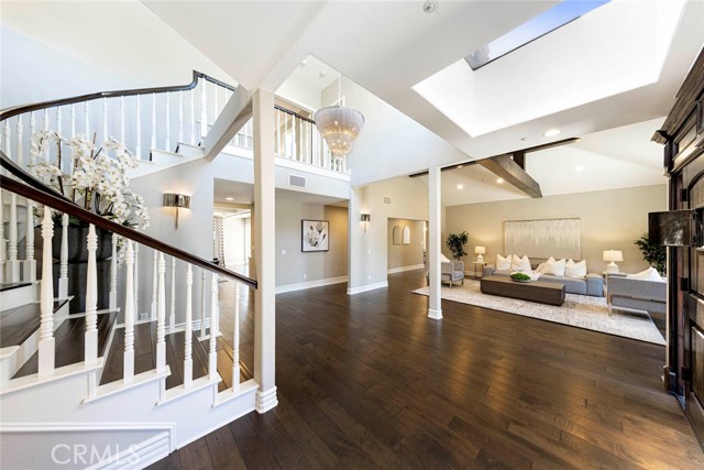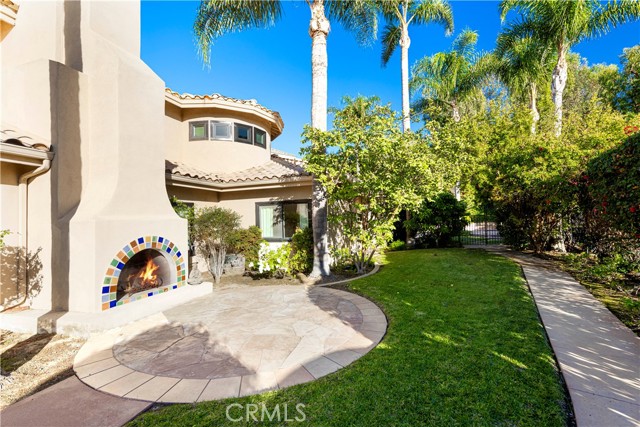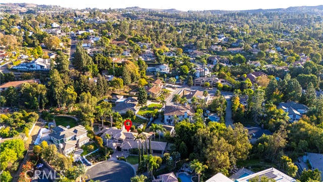 Exquisite custom estate in the prestigious gated community of Almeria, Anaheim Hills. Welcome to your dream home in one of Anaheim Hills’ most exclusive enclaves. Perfectly situated at the end of a private cul-de-sac, this custom-designed estate offers the pinnacle of refined living with approximately 5,574 sq ft of elegant interior space on a sprawling one-acre flat lot. Boasting five bedrooms + Office & 4.5 baths, this home has been meticulously remodeled with the highest attention to detail, quality, & craftsmanship. Step through the grand double-door entry into a light-filled foyer with a skylight, leading to a formal living room & dining room, both tastefully appointed for elevated entertaining. The living room showcases soaring cathedral ceilings with custom wood beams, while the dining room is adorned with 2 chandeliers, cozy fireplace & elegant architectural details. Upstairs, the primary suite is a private retreat with a fireplace, French doors to a balcony, & an adjoining room ideal as a nursery, office, or sitting area. The spa-inspired primary bath features a walk-in shower & closet, soaking tub, dual vanities & luxury finishes. A whole-house fan enhances energy efficiency & comfort. Main floor, three guest bedrooms include 1 en suite & 2 with a Jack-and-Jill bath. The family room features coffered ceilings, built-ins, a fireplace, & a temperature-controlled wine cellar. The chef’s kitchen includes Sub-Zero appliances, double ovens, six-burner range, espresso machine, 2 dishwashers, a farmhouse sink, oversized island, & abundant cabinetry. A sunny breakfast nook opens to a game room or executive office with a stone accent wall, wet bar, & a second ice machine. A large laundry room & 3/4 guest bath offer easy access to the resort-style backyard. Outdoors, enjoy mature fruit trees, a custom pool & spa with safety gate, a built-in BBQ island with ample seating under a covered patio & multiple entertaining spaces. Additional features: 3-car garage with storage, tankless water heater, filtration system, 2 beautiful fountains, integrated audio, video, internet, speakers all available throughout the home via centralized Control4 home automation system, dual newer HVAC systems, energy-efficient windows, $18K permitted electrical upgrade & newer carpet in the downstairs bedrooms. Ideally located near the 91 freeway, award-winning schools, shopping, dining & scenic trails—this home offers the perfect blend of luxury, privacy & convenience.