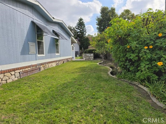 Prestigious Anaheim Shores Estates family and pet friendly Mobile Home Park. Great location across from the clubhouse and guest parking. Larger than average corner lot with grass area on the side and back. Lovely backyard with a lemon tree, roses and a barbeque pit! Large fenced in front patio area with brick inlays. Large front living room lots of windows and vaulted beam ceiling. It has a raised hearth fireplace with built in book/display shelves. Separate family room is open to kitchen-which has been fully remodeled with quartz counter tops, glass back splash, new cabinets, recessed lighting. Formal dining area has built in lighting, ceiling fan. Huge laundry/utility room with lots of cabinets ,built-in desk & sink.Direct access to covered carport-which fits 4 cars. There is also an outlet for electric cars, and storage shed. Large master bedroom with a walk in closet, roman tub, vanity counter and private bath. Recently installed laminate flooring throughout.