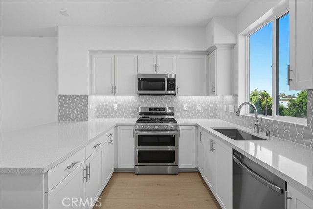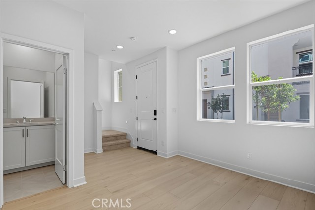 Welcome home to a brand-new collection of just 24 thoughtfully designed three story homes. This home is nestled toward the back of the community for added privacy, but perfectly located near freeways, shopping, dining, and entertainment — offering the ideal balance of convenience and an active lifestyle. This home redefines modern living with dual primary suites, plus a versatile first-floor den, and an open-concept layout designed for connection and comfort. Imagine hosting in a spacious great room that opens to a private balcony, cooking in a sleek kitchen with quartz countertops, stainless steel appliances, dual sinks, and a pantry, or gathering in a dedicated dining area crafted for memorable moments. Every detail is intentional: white shaker cabinetry, upgraded luxury vinyl plank flooring at select areas, expansive walk-in closets, an indoor laundry room with side-by-side hookups, and smart home technology — including a Ring doorbell, smart thermostat, and Brilliant smart switches — all included to elevate your lifestyle. Discover the perfect blend of elegance, convenience, and modern living at Townes at Orange — where your dream home awaits.