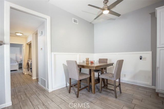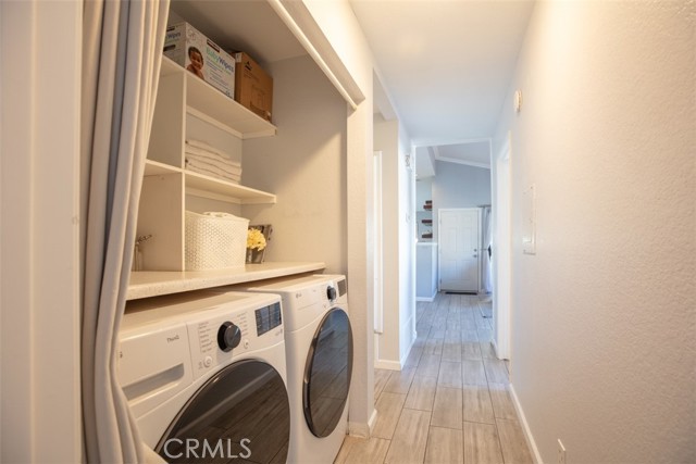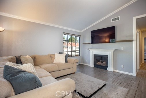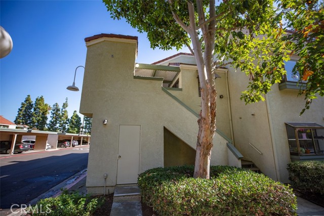 THIS UNIT IS CLEAN TURNKEY, MOVE IN QUICK! Most coveted end-unit in Evergreen Village! Vaulted ceilings, abundant natural light, 2 beds, 2 baths. Cozy gas fireplace, in-unit laundry, built-in closets. Remodeled kitchen with granite counters, new appliances. Spacious private balcony for entertaining: hose bib, outdoor closet, outlets; access from kitchen/living room. 1-car garage + covered carport. THIS ALL INCLUSIVE HOA covers Wter, Trash, Full access of Spectrum cable : Disney plus, Hulu, HBO max, ESPN unlimited, Paramount Plus, Peacock Premium, Fox One pool, jacuzzi, sauna. Miles to beach, near freeways. Bike trails to Huntington Beach, Orangewood views, dog park with designated trail, AND SO MUCH MORE....