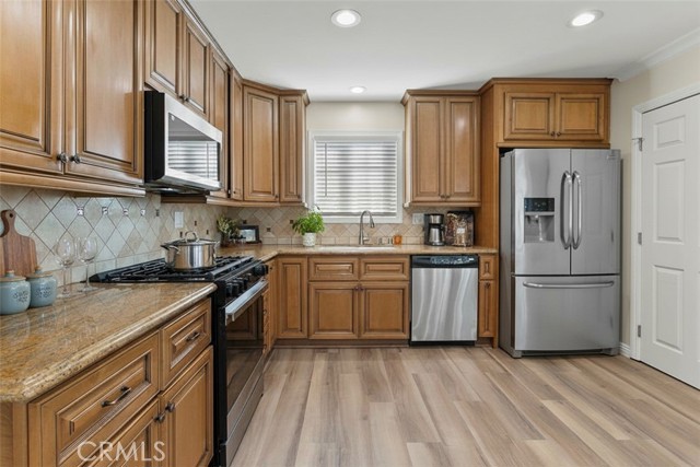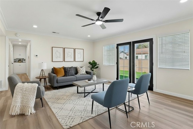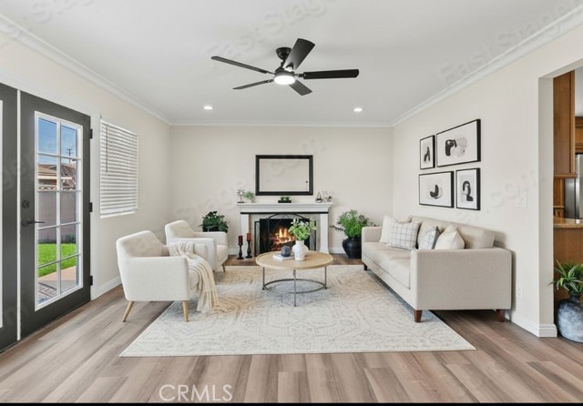 A RARE FIND IS A BEAUTIFUL HOME WITH ROOM FOR UP TO A 37' RV OR BOAT IN THE 3 CAR WIDE DRIVEWAY. HARDWOOD FLOOR RAISED FOUNDATION ON AN OVERSIZED LOT APPROX. 7280 SQ ST. NEW MARATHON SOD GRACES THE LARGE GRASSY YARD WITH SPRINKLERS. NEWLY PAINTED IN & OUT, NEW FLOORING, RECESSED LIGHTING, SEPARATE INDOOR LAUNDRY WITH ITS OWN ROOM AND PLENTY OF STORAGE CABINETS, COUNTER TO FOLD LAUNDRY ON. LARGE EAT IN KITCHEN WITH PLENTY OF WINDOWS, STAINLESS STEEL APPLIANCES. CROWN MOLDING! DUAL PANED WINDOWS. RECENTLY SERVICED HVAC SYSTEM. GAS FIREPLACE IN LIVING ROOM, GOOD SIZED CLOSETS WITH BUILT IN SHELVING. A COZY FRONT PORCH. ADDED BONUS OF A LARGE WALK IN STORAGE SHED, FOR USE AS A HOBBY ROOM, STORAGE, TOY ROOM, CRAFT ROOM, YARD TOOL STORAGE OR WHATEVER YOUR NEEDS. PULL DOWN STAIRS TO LOTS OF STORAGE IN ATTIC. ABOVE GARAGE. CEILING FANS IN ALL BEDROOMS WITH REMOTES AND 6 PANEL DOORS THROUGH-OUT. EASY ACCESS TO 91 & 5 FREEWAYS. A SHORT DISTANCE TO BUENA PARK MALL, GREAT FOOD CHOICES, SHOPPING AND KNOTT'S BERRY FARM. LARGE SPACIOUS GRASSY YARD WITH AUTOMATIC SPRINKLERS. EASY ACCESS TO 5 & 91 FREEWAYS.