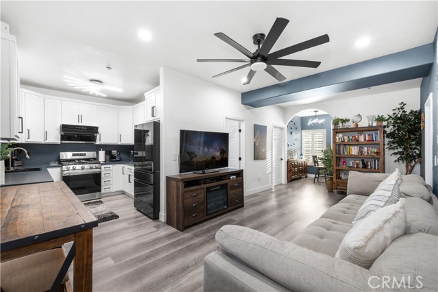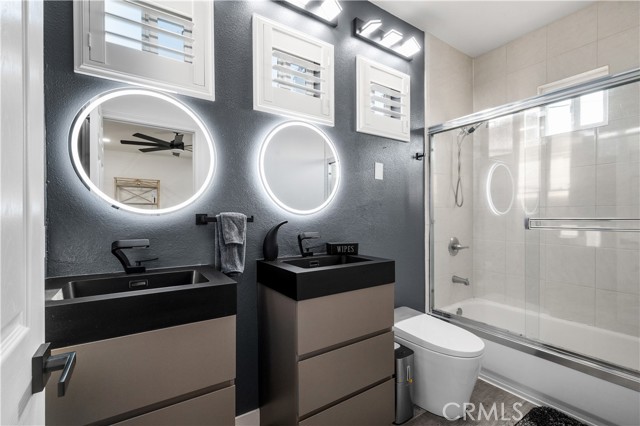 Welcome to this stunning tri-level home offering the perfect balance of style, functionality, and privacy. The versatile floor plan includes a bedroom and full bath on the second floor, while the top level features two spacious master suites, ideal for family, guests, or roommates. Each level enjoys its own private entrance, creating a rare sense of flexibility and separation that’s hard to find. Every corner of this residence has been thoughtfully upgraded, featuring modern finishes, designer lighting, fresh flooring, and custom details that give the home a polished, move-in ready feel. Even the attached garage has been upgraded with epoxy flooring and extra storage space, making it as functional as it is stylish. Set in a quiet end location, this home offers peace and privacy while remaining just minutes from shopping, dining, freeways, and popular attractions like Disneyland and Knott’s Berry Farm. With its incredible layout, modern upgrades, and VERY low HOA, this property is a standout opportunity you won’t want to miss.