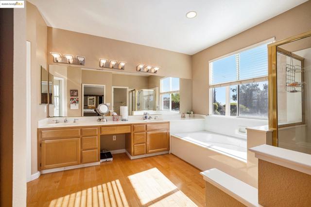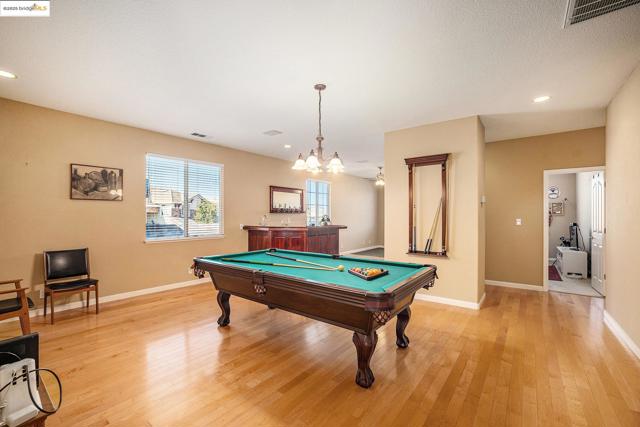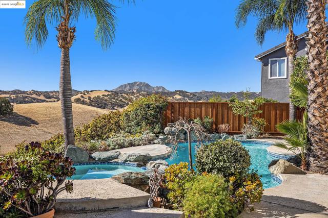 This is a spacious, comtemporay residence offering a luxurious feel with one of the largest floor plans in the community. The large Master Bedroomis downstairs. Privacy plus at the end of a quiet court which backs to the Antioch hills. The backyard offers an inground pool and spa with views of the hills. The home has solar, Upstairs there's a large bonus room with a wet bar. This home is an entertainers delight. Additional space for 7th bedroom upstairs