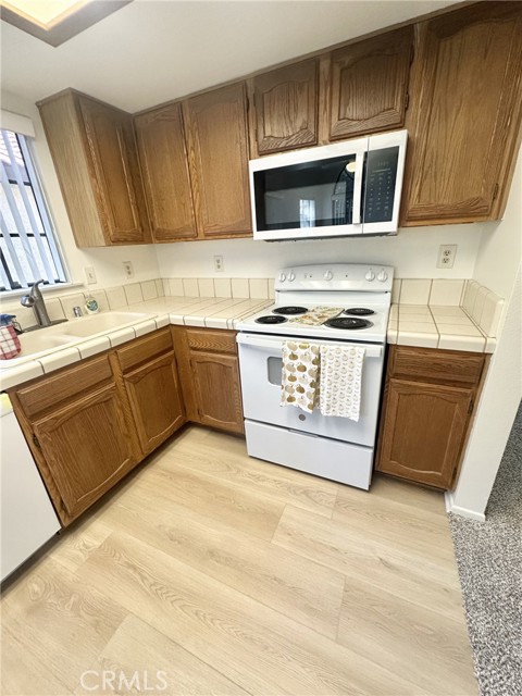 Come and enjoy the amenities that this 55 + community has to offer. There is a magnificent club house with an indoor and out door pools. This community is gated with 24 security. Welcome to this lovely spacious newly renovated split floor plan entailing 2 bedroom 2 bath home. This home has new carpeting and new laminate flooring throughout. New dishwasher and microwave. The main bathroom features Double sinks with lots of built-in-drawers and a huge walk-in- closet. The tile shower has been completley redone to boast modern beauty. the kitchen is very light and airy as the breakfast nook is great to enjoy a meal or simply a good cup of coffee. The guest bathroom has an indoor laundry room attached and close to the guest bedroom with a walk-in-closet. The one car attached garage is extra deep for additional storage. Lots of greenery and a nice back patio with a small block wall, perfect for your pup. Shopping, restaurants and a luscious golf course just a hop, skip and a jump away.
