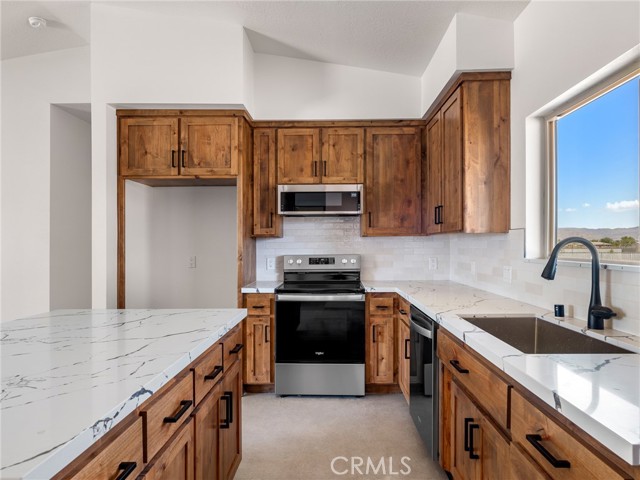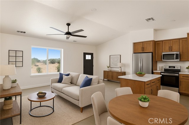 Brand New Construction. This unique 4 bedroom, 3 bathroom home showcases knotty alder hardwood cabinets with soft close doors and drawers accented by quartz counter tops that creates a warm atmosphere. The home comes with Whirlpool stainless steel appliances sure to stand out. The polished concrete flooring and all matte black hardware give the home an inviting feel. Making sure to give this home great curb appeal, the landscaped front yard really makes the exterior colors of the house pop. This home has all electric appliances but is equipped with the option for the new owner to connect to gas. The solar system is paid in full. The exterior yard is fully fenced providing an option to easily connect an automatic gate opener in the front and add a gate in the rear if desired.