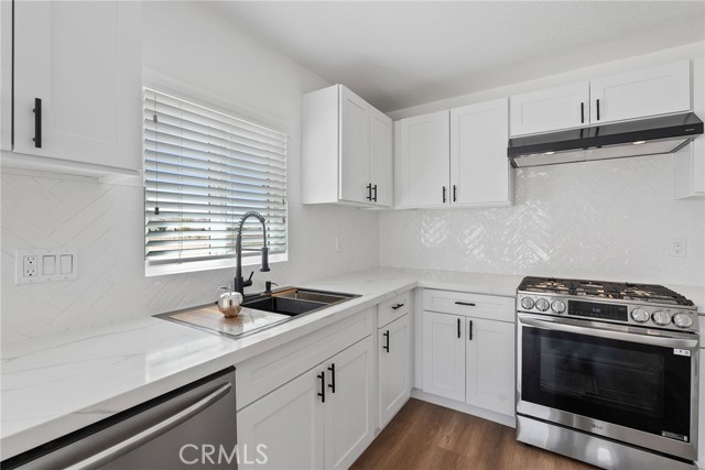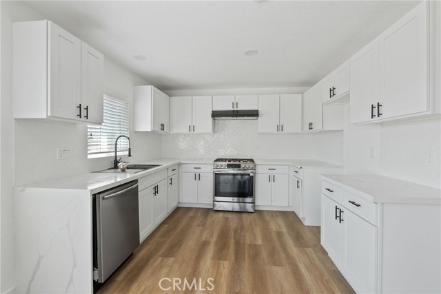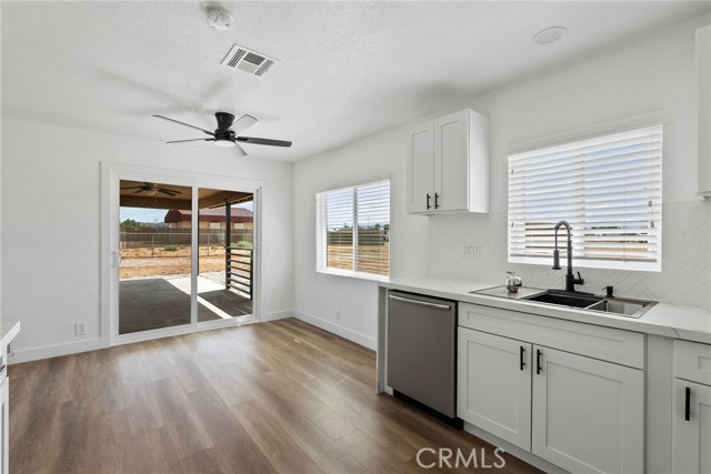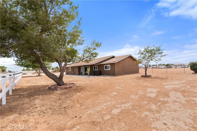 Welcome to 20631 Zuni Road in Apple Valley, a completely renovated three bedroom, two bathroom home sitting on a full acre of land. Every detail has been thoughtfully redone, making this property truly turnkey for its next owner. Inside, the open layout feels light and inviting with new dual pane windows, fresh paint, recessed lighting, and brand new vinyl plank flooring throughout. The kitchen has been completely rebuilt with quartz countertops with a waterfall end cap, a large single basin sink including workstation, custom herringbone tile backsplash, new shaker cabinets, and stainless steel appliances. Both bathrooms have been remodeled with new tubs, showers, vanities, quartz tiling, and matte black fixtures that bring a modern touch. This home is not just about the interior. Outside, you’ll find a brand new exterior paint job, drought tolerant landscaping in the front yard, and a white picket fence accented with solar powered post lights that give the property a charming curb appeal. On top of that, there is a large 15 by 20 shed that provides extra storage or space for projects. With a lot size of 43,560 square feet, there’s plenty of room for RV parking, outdoor toys, animals, or even future expansion. Located in the desirable High Desert community of Apple Valley, this property combines modern living with wide open space and stunning views. It’s move-in ready and set up to be enjoyed from day one. This is the perfect opportunity for a buyer looking for a fresh, stylish home with land and flexibility to grow.
