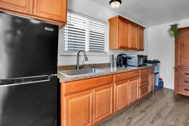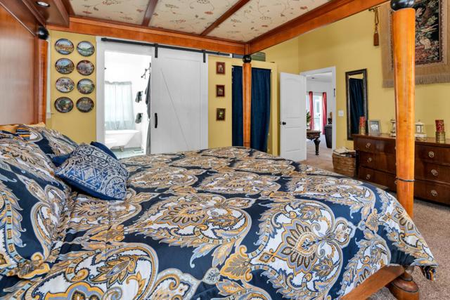 Nearly one usable acre, fully fenced. Contemporary Home, addition done with permits in 2004. High ceilings let in abundance of natural light. Designer chef's kitchen boosting a large quartzite stone island, black walnut custom cabinetry, premium appliances, 5-burner cook-top, walk-in pantry. Spacious dining room complete with fireplace/wood-burning stove, perfect setting for family gatherings. All bedrooms offer direct access to the outdoors. Children's playground and charming reading nooks above the beds. Versatile home office/den is used as a fifth bedroom. Septic. Water supply is Central Water District. Solar is paid & owned, newer tankless water heater, Solar-heated above-ground exercise pool & outdoor sauna. Detached garage. Next to it, don't miss the Separate Room with a kitchenette. Barn can be transformed into additional 3-car garage/workshop. Raised garden beds & mature fruit trees. Everything you dream of, still lots of room to grow.