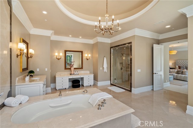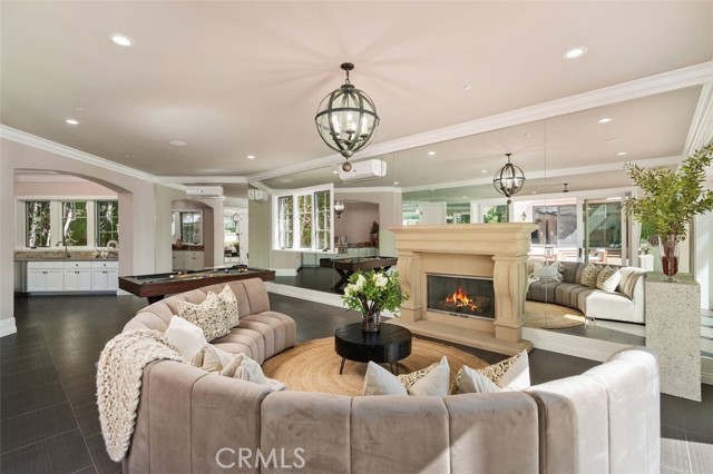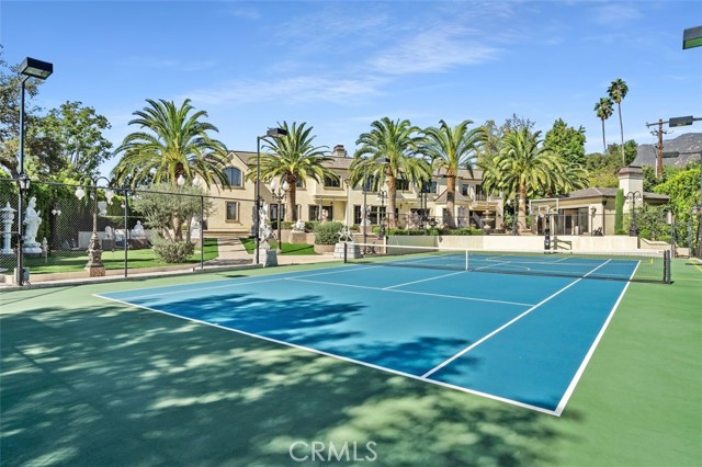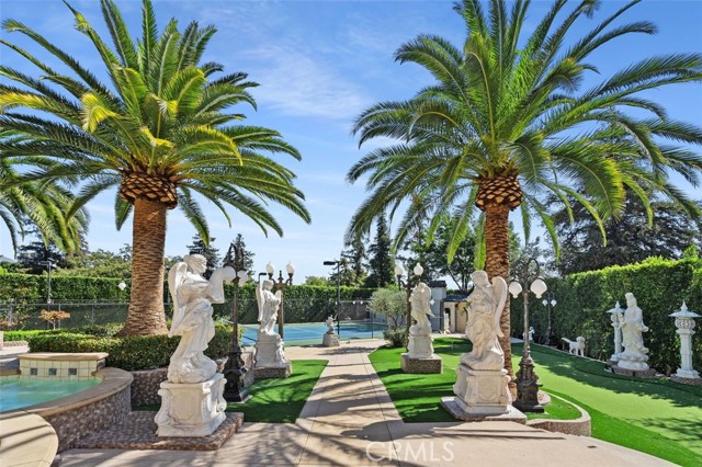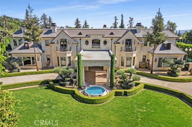 Welcome to this beautiful home located in the highly sought-after Upper Rancho area of Arcadia. Set on a generous corner lot of over an acre, this property offers exceptional curb appeal with its inviting circular driveway and porte-cochère. Step inside to a spacious foyer featuring high ceilings, an impressive chandelier, and a striking double spiral staircase. The elegant inlaid marble floors and tasteful wall panels create a warm and welcoming atmosphere. This 7-bedroom home, designed by renowned architect Robert Tong and built by Mur-sol Construction, is perfect for families or those who love to entertain. The lush landscaping features a golf paddle area, six towering king palms, and a variety of mature trees, making the outdoor space both beautiful and functional. The backyard is adorned with impressive marble and stone sculptures, adding a touch of sophistication. Enjoy the best of California living with outdoor amenities that include a full-size tennis court, a swimming pool and spa, an en-suite guesthouse, and a large covered sitting area complete with a built-in BBQ and fireplace. An additional 800 sq. ft. Accessory Dwelling Unit (ADU) offers flexibility for guests, or a private retreat. The main level boasts a formal dining room, an elevator, a cozy home theater, a guest bathroom, and two en-suite bedrooms. The open-concept chef’s kitchen is a highlight, complete with an oversized marble island, a wok kitchen with Wolf appliances, and a comfortable breakfast area that overlooks the sparkling pool, spa and a fountain. Perfect for entertaining, the home also features a game room, wet bar, and a customizable wine room. Upstairs, you’ll find four spacious en-suite bedrooms, a lounge area with an additional fireplace, and a luxurious master suite with two spacious closets, a private sitting room, and a balcony showcasing stunning mountain views. The spa-inspired master bathroom provides a serene escape. Don’t miss this opportunity to own a remarkable home that seamlessly blends comfort, style, and outdoor beauty in the heart of Arcadia!