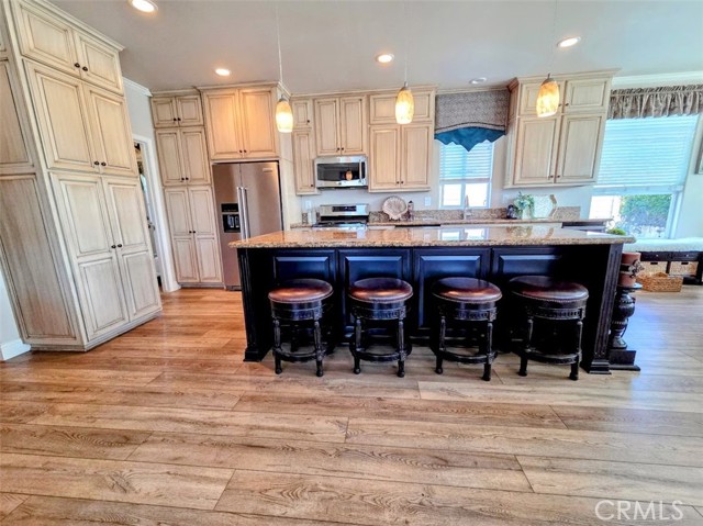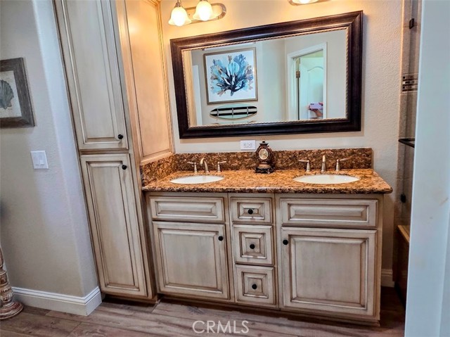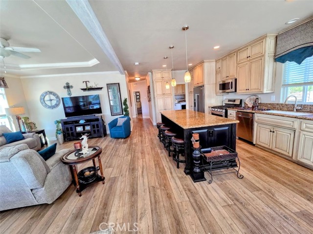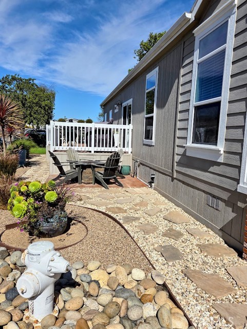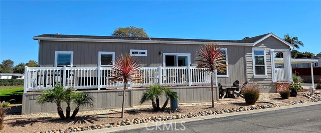 This Champion 2015 manufactured home has many upgrades and is gorgeous. With almost 1600 sq ft it shows like a model home and features 3 large bedrooms including a extra large primary suite with walk in closet, step in shower, granite double vanity and water closet for privacy. One of the guest bedrooms has French doors leading to a beautiful trek patio with plenty of room for outside entertaining. Recessed lighting, huge open floor plan with kitchen, living room and dining room. Small front porch, home faces south west & with the sun setting and all the lovely windows, the home receives ample light most of the day & the sunsets are incredible. The kitchen features a huge granite island, wine refrigerator & tons of storage in the kitchen & laundry room. This home shows love and care and is maintained beautifully. Covered carport for two vehicles, auto irrigation for landscaped yard, fire pit outside by deck and grassy fenced back yard which backs up to the beautiful greenbelt of Mesa Dunes. Vinyl flooring through out except bedrooms are carpeted. Purchase price includes stove, dishwasher, wine refrigerator & built in microwave and firepit. Located near the Historic town of Arroyo Grande, World Class Wineries & the Pacific Ocean. RV storage is available (additional fee). Mesa Dunes is a quiet all age community (child and pet friendly). It's located on the Mesa above Arroyo Grande and is close to the Village. The park is beautifully maintained with ocean views, two swimming pools (one heated year round), two clubhouses with full kitchens, a jacuzzi, gym, billiards, ping pong table, playground, greenbelt, walking trails, half basketball court. Buyer must be approved by park management, verify new space rents which may increase 10%, lease, rules & regulations. Current BASE space rent is $1314.76 and includes water, sewer & trash which is based on your usage monthly. Mesa Dunes is a great place to live with ocean breezes and friendly people.
