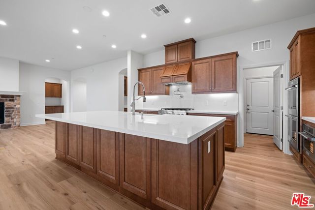 MOVE-IN READYStunning 4-bedroom, 3.5-bath home in Belcourt at Seven Oaks with 2,862 sq. ft. of living space on an 11,589 sq. ft. cul-de-sac lot. This elegant residence features an office and pantry with frosted glass doors, formal dining, and inviting indoor and outdoor fireplaces. The chef's kitchen showcases chestnut maple cabinets, quartz kitchen island, counters and backsplash, cast iron farmhouse sink, upgraded kitchen faucet, pot filler, and KitchenAid appliances including, double ovens, 6-burner cooktop, microwave, and dishwasher. Designer upgrades include glass uppers at the breakfast nook and butler's pantry, framed mirrors at Primary bath and powder room and upgraded flooring throughout. The luxurious primary suite has French doors to rear yard and boasts a spa-like bath with rain showerhead. Perfect for entertaining and everyday living in a desirable non-gated community close to all the best of Seven Oaks. Clubhouse Fitness Center, Community pool and more.