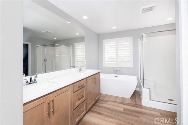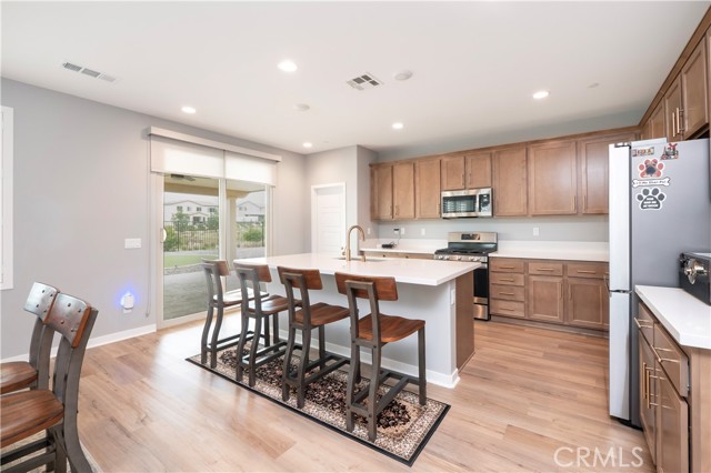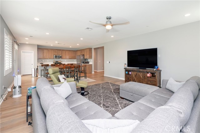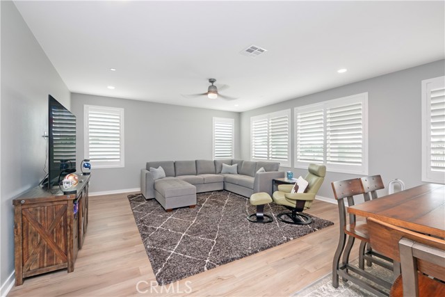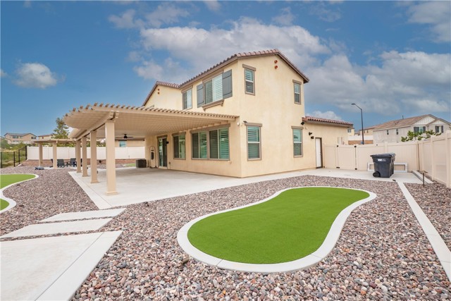 Step into modern comfort and style at this beautifully upgraded two-story home in Banning. With 2,286 sq ft, 4 bedrooms, and 3 full baths, this home was designed for both everyday living and effortless entertaining. From the moment you walk in, the open floor plan with sleek LVP flooring and plantation shutters sets the tone for a bright and welcoming space. The chef’s kitchen comes complete with stainless appliances, while the great room and dining area flow seamlessly together, creating the perfect backdrop for family gatherings and celebrations. Retreat upstairs to the spacious primary suite featuring a soaking tub, separate shower, and plenty of room to unwind. Smart home features, energy-saving upgrades, and a 2-car garage with EV charger bring modern convenience at every turn. Outside, your private backyard oasis awaits with professional landscaping, extended patio cover, and freestanding lattice with ceiling fans—ideal for summer barbecues, quiet evenings under the stars, or hosting friends year-round. Bonus Paid off Solar! This is more than just a home—it’s a place where memories are made.