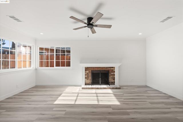Fabulous Single-Story Home Offering 4 bedrooms 2 baths over 1300 sq ft. Remodeled Kitchen offering an open concept with Quartz Counter Tops and kitchen island. Stainless Steel Appliances with a Gas Stove. Remodeled Bathrooms with New Vanities with Quartz surroundings. Can lighting throughout. Laminate Flooring and Freshly Painted walls. Ceiling fans in every bedroom. Brick fireplace for those cozy winter nights. New A/C and Furnace. Tankless Water Heater. Solar. Close to Schools, Shopping, Freeways and Bart. Don't walk, run to this beauty.