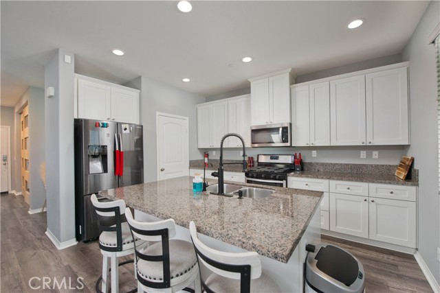 Welcome to this beautiful and elegant 4 bedrooms 3 baths home in the heart of Beaumont. Built in 2019, and just shy of 2,000 sqft., this spacious 2 story home has the perfect layout. Open floor concept that brings together the great room with the kitchen/dining area. The kitchen provides an island with double sinks, granite counter tops, walk-in pantry, and beautiful shaker door cabinets. You will also find one spacious bedroom downstairs along with a full bathroom. Making our way upstairs, a master suite with a large walk in closet, private bathroom with a recently remodel walk in shower, and a double sinks vanity. You can also enjoy beautiful sunsets from the comfort of your bedroom. Down the hallway, you will encounter two additional spacious bedrooms, full bathroom, and laundry room. With an oversized backyard, and a covered large patio with a paved area, you can relax and enjoy those summer bbq’s. Other features: central AC system, tankless water heater, energy efficient appliances, PAID SOLAR, vinyl flooring, 2 car attached garage, and much more. This residence blends sophistication, comfort and style- this home truly has it all.