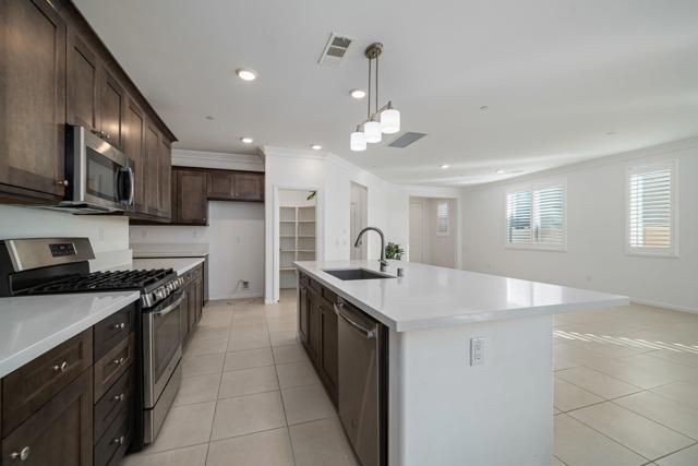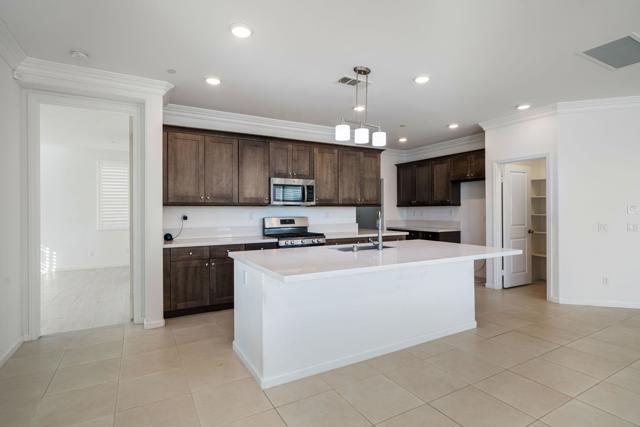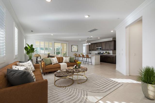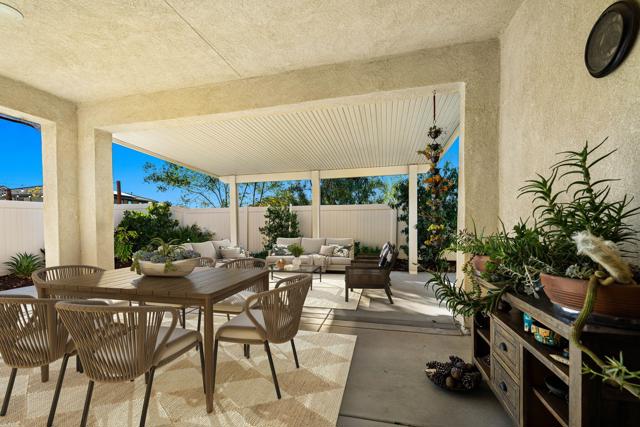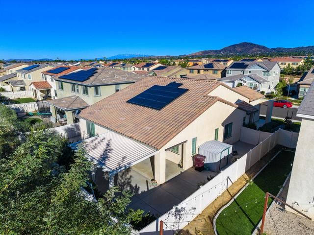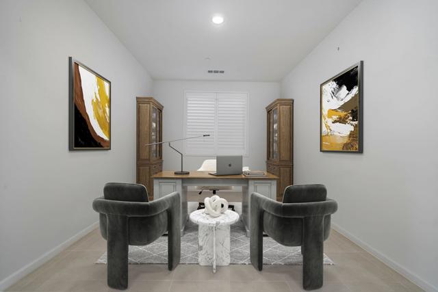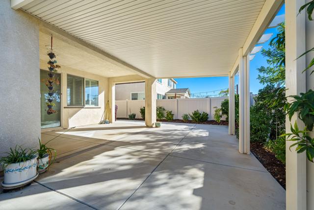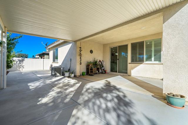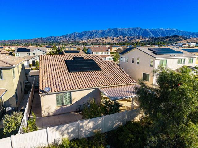Welcome to 1445 Galaxy Drive where comfort, style, and community meet in the heart of Beaumont's desirable Sundance North neighborhood! This beautifully maintained single-story home offers an open floor plan with 3 spacious bedrooms PLUS an additional office/den, 2 bathrooms and a 2-car garage. From the moment you arrive, you'll notice the inviting curb appeal, manicured landscaping, and pride of ownership from the original owners. Inside, natural light fills the space, complemented by bright paint, crown molding, plantation shutters, tile flooring, and plush carpet. The seamless flow between the kitchen, dining and living area makes it perfect for entertaining family and friends. The gourmet kitchen is the centerpiece of the home, featuring a large quarts island with counter seating, upgraded cabinetry, pantry and modern appliances. Retreat to the primary suite, complete with a spacious walk-in closet, soaking tub, walk-in shower, dual sinks and a private bathroom. The additional bedrooms are generously sized, and the guest bath features a shower-tub combination. A separate indoor laundry room with built-in cabinets adds convenience. Step outside to your private backyard where you can enjoy a harvest of homegrown fruit trees including avocado, orange, tangerine, peach, and plum. Perfect for relaxing or entertaining under a covered concrete patio with an extended shaded pergola.Home has leased Tesla Solar for only $84.92/mo. Sundance is one of Beaumont's most sought-after low HOA communities at $161/mo, featuring multiple parks, BBQ areas, and swimming pools for residents to enjoy. Zoned for top-rated schools including Starlight Elementary, San Gorgonio Middle, and Beaumont High. With its prime location, scenic surroundings, and move-in-ready condition, this property is truly a gem to call your own. Don't miss this opportunity to make this home yours!