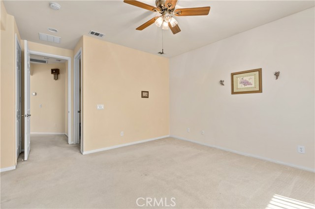 Enjoy the Resort Lifestyle of Del Webbs Active Adult 55+ Community of Solera at Oak Valley Greens. Step into this open-concept layout, that blends function and comfort. This Princess model offers two bedrooms, two baths and a den/office. The open kitchen features Corian counter tops, Oak cabinets with pull outs, a lazy susan, and white appliances. The primary bedroom is spacious in size, and includes a walk-in closet, the primary bath has dual sinks and large shower. The guest bedroom is at the front of the home with second bath off of the hallway and the den/office is located just off the entry. The backyard of this home is a very beautiful and low maintenance retreat, with a spacious patio and easy-care planters. The HOA includes Spectrum Cable TV & Internet. The community is a gated with a maned entrance and 24 hour a day 7 days a week security patrol, includes a Clubhouse, with one of the best fitness centers you have ever seen which includes an indoor walking track, Library, Billiards Room, Tennis and Bocce Ball Courts, multi-purpose room, BBQ area and scenic greenbelt, and many social clubs. Come live the resort lifestyle and enjoy your very own piece of paradise.
