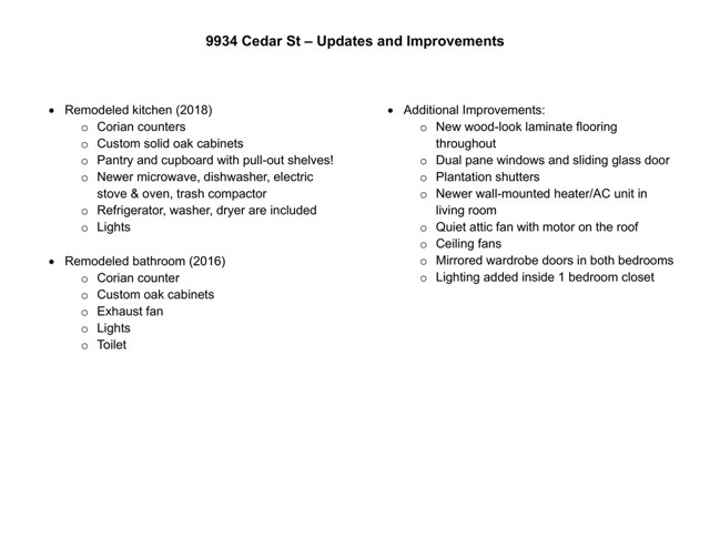 Welcome to Bethel Manor! Located in a lovely senior 55+ complex, this single level condo (PUD) is move-in ready. Discover the perfect blend of comfort and convenience in this beautiful 2 bedroom, 1 bath, 800 sqft home. The light & bright living room and dining area feature recessed lighting and are open to the kitchen. The kitchen was remodeled in 2018 with Corian counters, warm solid-wood cabinetry, a pantry and lower cupboard with pull-out storage and a full suite of appliances purchased in 2018 including microwave, electric stove/oven, dishwasher, and trash compactor. Enjoy the convenience of indoor laundry with a full-sized washer and dryer included. The interior boasts stylish new wood-look laminate flooring, dual pane windows and plantation shutters throughout. A newer wall-mounted AC/heater unit in the living room and a quiet attic fan ensure year-round comfort. Both bedrooms are spacious with mirrored closet doors with inside closet lighting, and they share a hall bath. Step outside to your private patio which has been freshly tiled and includes a vinyl fence and gate, making a perfect space for coffee or unwinding. An assigned single carport space (#14) close to the unit with extra storage rounds out this move-in-ready gem. Residents of Bethel Manor enjoy a low-maintenance lifestyle with HOA dues that include a clubhouse with full kitchen, secure gated access entry, shuffleboard court, beautifully landscaped grounds with paved walkways, and essential utilities including water and trash. Many residents prefer a unit like this one which fronts to Cedar St, as it offers privacy, easier parking for guests and direct delivery of mail order items. This is more than just a place to live, it's a place to thrive! Come see why Bethel Manor is the ideal setting for your next chapter.