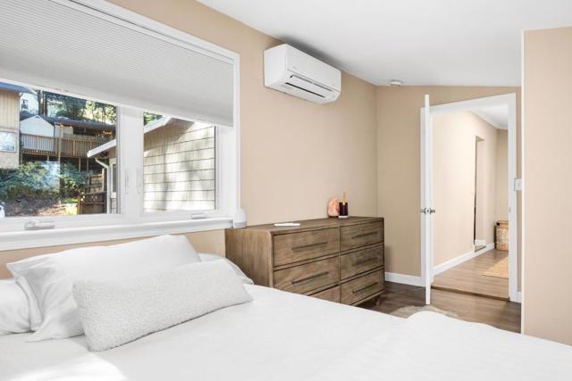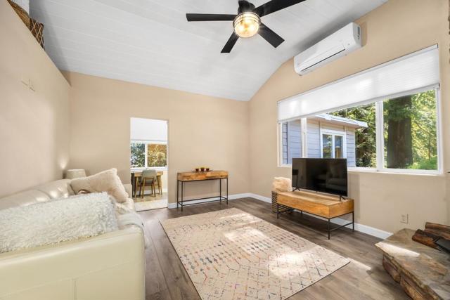Breathe deep, mountain lovers! This single-level sanctuary is your escape hatch, nestled on a sun-drenched slice of Ben Lomond. Imagine mornings bathed in golden light, vaulted ceilings creating a sense of spacious calm, and a garden patio perfect for mindful moments. But don't let the tranquility fool you, this home's got a modern pulse. A 2010 refresh and a 2024 tech infusion, featuring a Tesla battery, EV charger and two brand new mini split heaters/AC, mean you're plugged into the future. Plus, parking for up to five vehicles, possible RV and maybe even add a carport or garage? That's amazing! Downtown Ben Lomond's charming cafes and shops are just a stroll away, while the majestic redwoods of Big Basin and Henry Cowell State Parks beckon for outdoor adventures. Across from Scenic is the lovely Highlands park and river. Need a city fix? Silicon Valley's a smooth 40-minute cruise, and Santa Cruz beaches are a breezy 25-minute jaunt. It's the perfect blend of mountain serenity and modern convenience. Come experience the calm.
