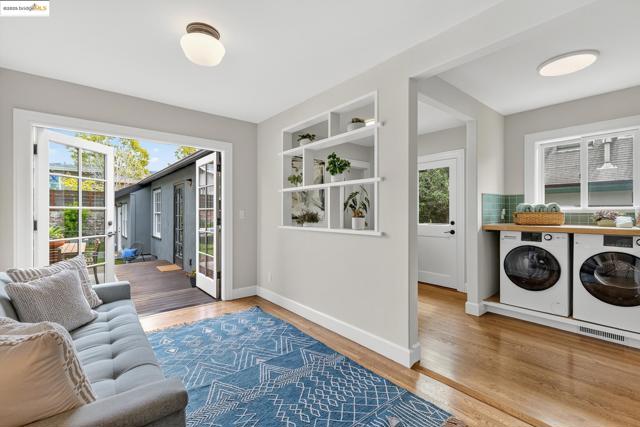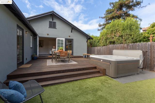 Ideally located near Berkeley’s favorite restaurants, shops, and recreational facilities, this single-level 1920s Craftsman beautifully blends period charm with modern updates. Thoughtful renovations include a serene primary suite, a fully permitted attached ADU completed in 2021 and solar. The welcoming entry opens to a spacious living room with a large picture window and a custom built-in with a gas fireplace in its center. The adjoining dining room is perfect for festive gatherings, while the eat-in kitchen with breakfast nook connects seamlessly to a family room and backyard beyond. The main home offers three bedrooms and two bathrooms, including a private primary suite with French doors to the yard. The attached ADU features its own entrance, a bedroom, bath, laundry, and a stunning great room with vaulted ceilings, skylights, and a full kitchen—ideal for guests, extended family, or rental income. Enjoy effortless indoor-outdoor living with multiple French doors opening to a private backyard oasis complete with hot tub, level turf, and dining area. With an EV charger, solar panels, and an unbeatable location near Monterey Market, Hopkins Street shops, and Solano Avenue, this exceptional Northbrae property offers timeless style, modern comfort, and rare flexibility.