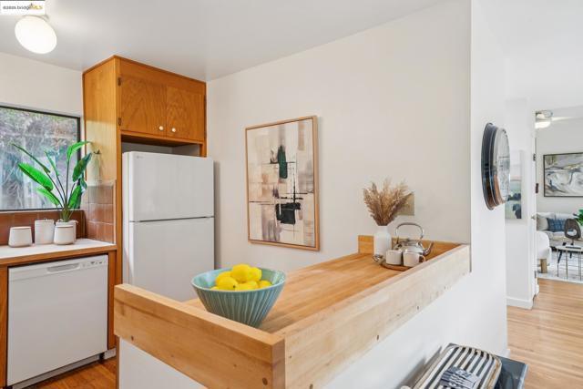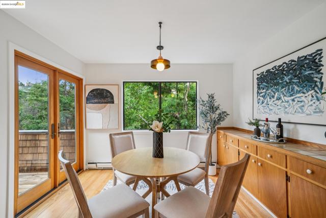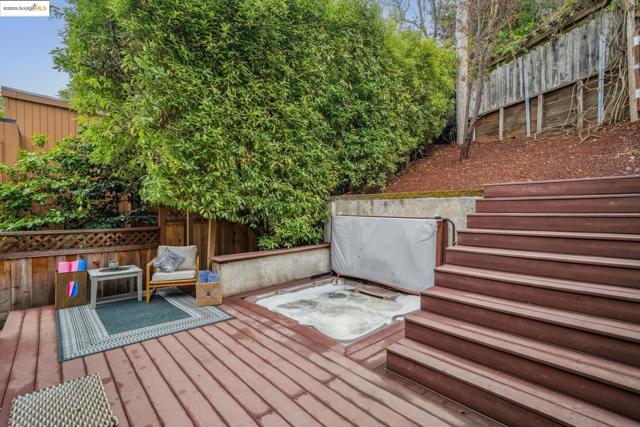 This peaceful North Berkeley Hills retreat offers light-filled living with freshly refinished hardwood floors, tall ceilings, and green views from almost every window. Step inside to find a welcoming living room, a bright dining area, a kitchen complete with pantry, and a handy half bath. Sip your morning coffee on the deck accessed through French doors. Down one level, all three bedrooms, including a primary suite with en-suite bath are thoughtfully located with laundry nearby. A dedicated office with both interior access and a separate entrance is on the third level providing privacy and flexibility for work or guests. Built in 1979 with modern systems and copper plumbing, the home combines reliability with comfort. Multiple decks, a sunny patio, and a secluded hot tub invite you to relax and enjoy the surrounding natural beauty. Just minutes from UC Berkeley, the Rose Garden, and neighborhood parks, as well as Berkeley’s shops and restaurants, this home offers the perfect balance of convenience and tranquil hillside living.