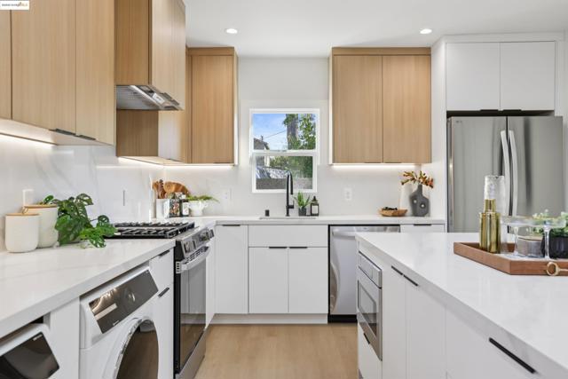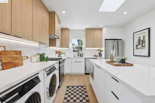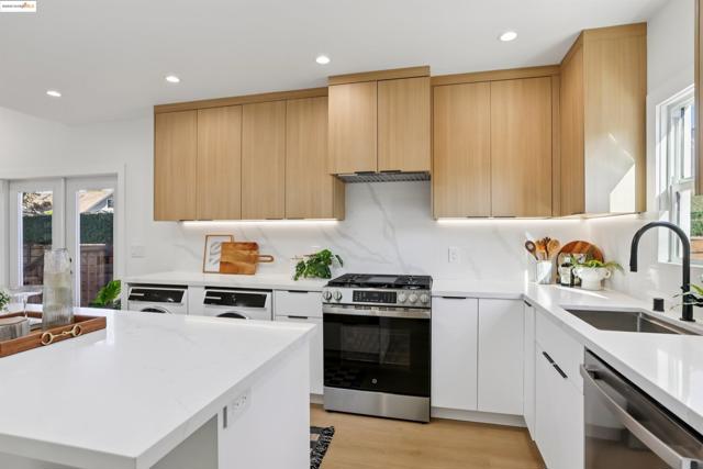 Back on market, no fault of the property! Welcome to 1612 Carleton Street: a fully permitted, down-to-the-studs remodel & addition that’s been thoughtfully updated with all-new systems including electrical, plumbing, and a high-efficiency heat pump for year-round comfort. This 2-bed, 2-bath home perfectly blends contemporary style with timeless appeal. Discover vaulted ceilings & strategically placed skylights that fill the home with natural light. The bright modern kitchen boasts stainless steel appliances, sleek quartz countertops, under cabinet lighting & waterfall island w/ seating. The thoughtful layout flows seamlessly into the open floor plan living room. The primary suite offers a serene retreat w/ glass doors leading to the redwood deck, keeping you connected to nature. Outside, enjoy your private oasis with a grassy lawn perfect for lounging & outdoor dining and a large shed for your storage needs. Additional features include washer and heat pump dryer, new insulation throughout, new roof, recessed lighting, new floors & tankless water heater. Located in the heart of Berkeley you're minutes away from Cal, Berkeley Bowl, BART & hundreds of cafes, restaurants & small businesses. Don't miss this rare opportunity to live the Berkeley lifestyle in modern luxury.