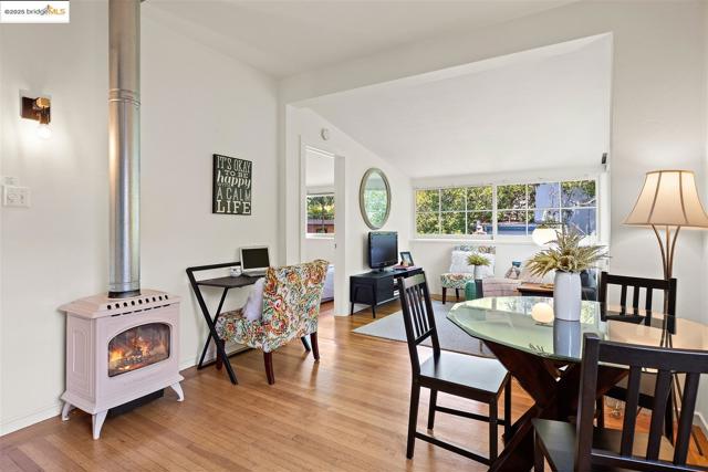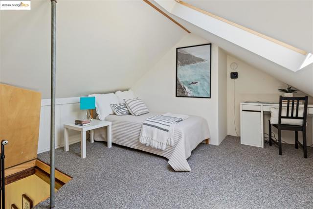 This hip-and-retro Elmwood condo is full of sunshine, style, and unmistakable charm—perfectly positioned on a picturesque tree-lined street, just a short stroll to the shops and cafés of Elmwood and an easy walk to UC Berkeley. Step inside to find a cheerful blend of vintage character and modern updates. The main level features a private bedroom and an open living/dining area bathed in natural light, with leafy treetop views that make every day feel a little more magical. The updated, efficient kitchen keeps things cool with sleek appliances and original exposed brick—a fun nod to its mid-century soul. The showstopper? An Arkle Modular stairway that leads to a lofted hideaway with a roof window offering sweeping views of the hills and Mount Tamalpais—your own private perch for daydreaming, reading, or stargazing. Full of personality, light, and good vibes—this is Berkeley living with a twist.