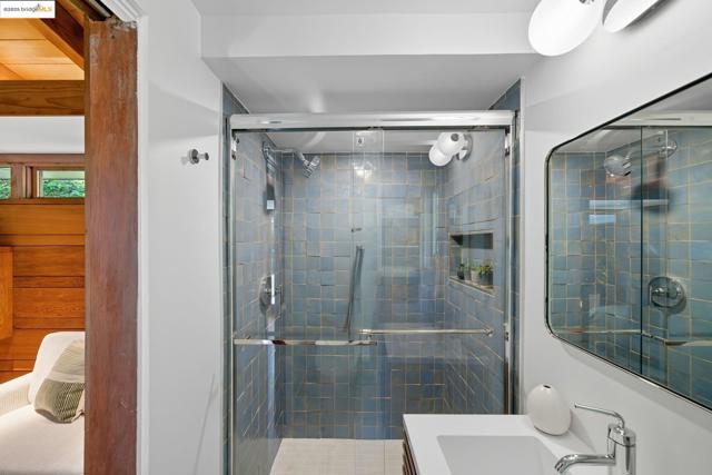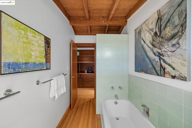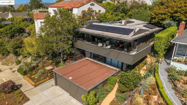 Designed in 1953 by architect Morgan Shaw, this mid-century modern home captures the essence of California design with seamless indoor-outdoor flow, original redwood walls, and floor-to-ceiling low-E glass framing iconic views of the Golden Gate, Bay Bridge, and Richmond-San Rafael. Later enhanced by architects Bill Glass and Bennett Christopherson, the home combines architectural pedigree with thoughtful modern upgrades. The kitchen and dining room, reimagined in 2016 by Mason St. Peter, feature custom millwork by Nobuto Suga of Small Works, while a vintage Cado Poul Cadovius wall unit provides both style and function. A serene lower-level primary suite includes a custom solid oak dressing room. Modern systems include a 200-amp electrical panel, dual Tesla Powerwalls, full solar, EV charger, LED lighting, and discreet hidden home cinema. Outdoor living shines with a level-in backyard featuring an Ipe deck, Galanter & Jones heated bench, plumbed Lumacast fire pit, Japanese Maple, fruit trees, and vegetable garden, all designed by Heather Reid. Recently repainted, with a two-car garage and proximity to Tilden Park, UC Berkeley, and North Berkeley shops, this rare home offers a perfect blend of history, design, and sustainability.