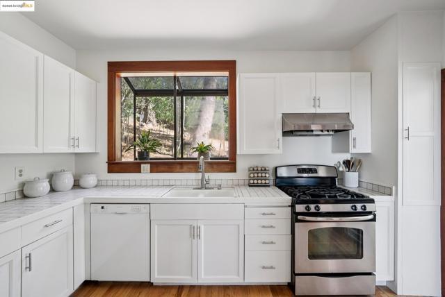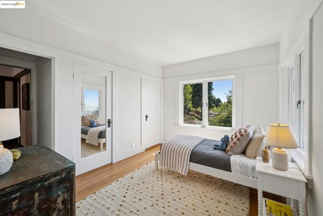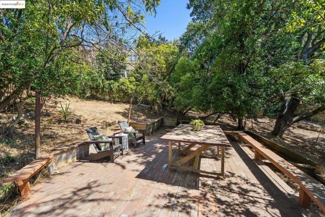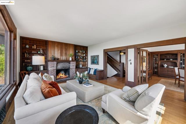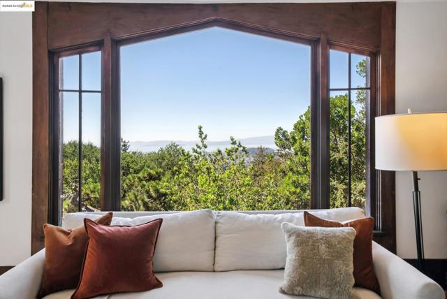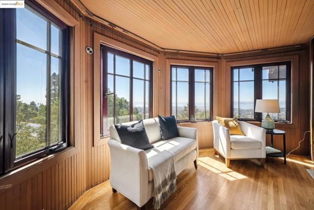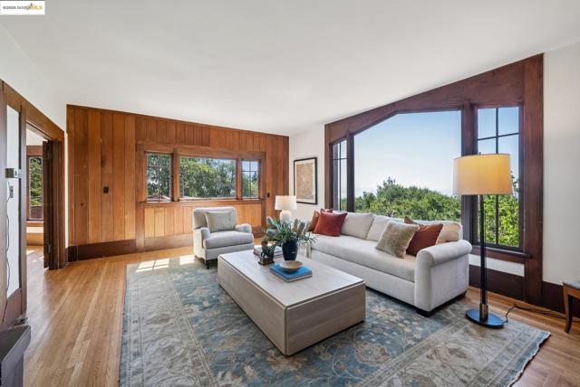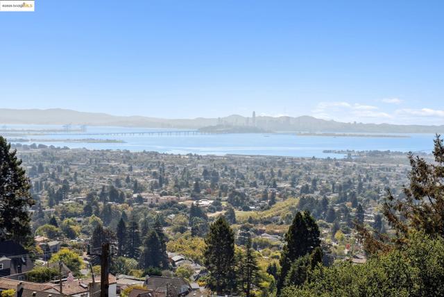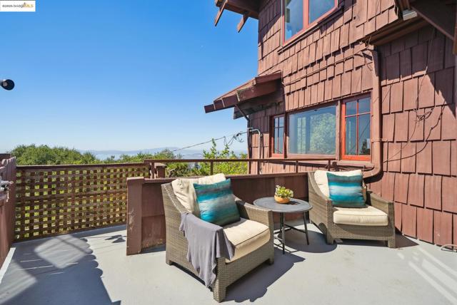 This Arts & Crafts era residence nestled in the Berkeley Hills offers the perfect blend of period charm, spacious living & breathtaking panoramic views of SF, Bay & GG Bridges, & Mt. Tam. Built in 1915, this thoughtfully designed 3++ bed, 2+ bath home sits on a massive 20,375 SF lot. The separate garage & driveway creates opportunities for a lot split or ADU. The main level with gorgeous oak floors offers a dramatic living room with period wood trim, warm brick fireplace flanked by built-ins & large picture windows to the sweeping Bay views. The dining room boasts box beams, built-ins & a wall of windows to fill the room with natural light. Enjoy the expansive woodsy setting & Bay views while dining & entertaining on the wraparound balcony. The kitchen has ample cabinetry & opens seamlessly to nature-filled back decks. A lower level guest suite, complete with kitchenette & full bath makes it perfect as a casual family room, home office or in-law suite with both interior & separate exterior entry. Just minutes to No. Berkeley restaurants, shops, farmer's markets & vibrant downtown. This exceptional property is ready for your inspiring vision & updating with endless opportunities to expand & take advantage of the private hills setting & views. Open Sun 2-4:30.