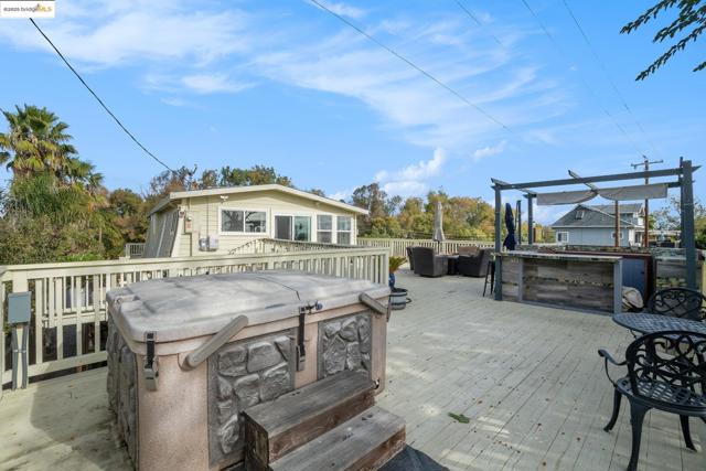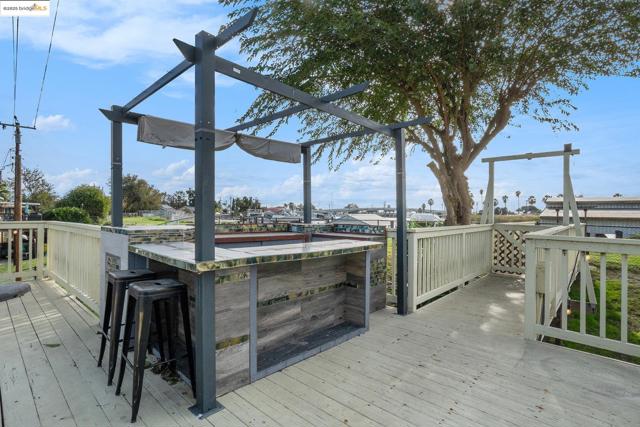 Waterfront Home with Solar, Dock, and 2 Beds / 3 Baths, possible 3rd bedroom or Den off of the downstairs bedroom. 1,369 sq ft of living space on a 8,500 sq ft lot. There are two mini split systems (upstairs and downstairs) for air conditioner and heating. Newer solar panels with four years left on payments. Primary bedroom upstairs with two large walk in closets. Flooring is plank-style in main areas, carpet in bedrooms. Other features: Reverse osmosis drinking water system, Redone deck with new pilings, Covered boat berth + dock with fresh water and lights, Automatic entry gate, Two-car garage with high ceilings, Updated electrical panel, French drains for drainage Move-in ready and great for entertaining or relaxing by the water.