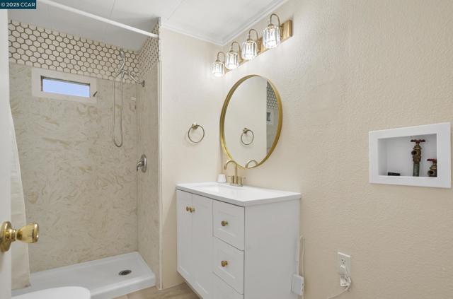 *Seller Special* Get 1 Month of Space Rent Covered When You Close! Don’t miss this limited-time opportunity! Recent upgrades include a brand-new roof, new insulation, drywall, and fresh interior and exterior paint. The primary bedroom features a new ceiling, and the entire home includes all new windows, doors, frames, doorknobs, crown molding, and updated light switches. The kitchen is beautifully redone with quartz countertops, new cabinets, backsplash, an island with storage, LED ceiling lights, and updated appliances, including a stove, fridge, and exhaust fan. The bathroom is fully remodelled with new shower tile and a washer/dryer hook-up. Additional highlights include new waterproof vinyl plank flooring throughout, updated lighting fixtures, new floor vents, pipe boots replaced during the roof installation, and a newly painted detached storage unit. The front porch has been extended to 90 sq ft, and the landscaping has been refreshed for added curb appeal. This move-in-ready home combines comfort, style, and functionality in one complete package. Space Rent is $1,195/m. The buyer must provide final park approval before the close of escrow. Fireplaces: NO