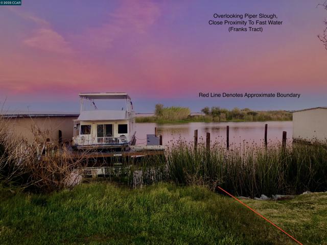 Calling all water recreation enthusiasts! One of Bethel Island's most desirable street locations! This waterfront property is in close proximity to Sugar Barge Resort, Restaurant, and Gas dock! Overlooking Piper Slough, the property is also in close proximity to fast water (Franks Tract). By land, the property is only minutes away from Bethel Island Golf Course. Hundreds of delta waterways and family recreation at its best - right from outside your back door! Perfect location to build a home as a weekend getaway. Boat dock on property excluded from sale. Red boundary lines represented in photos are approximate. Please consult with a surveyor to confirm specific boundary lines if desired. No HOA! A must see.