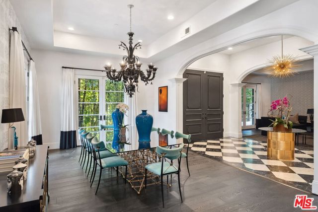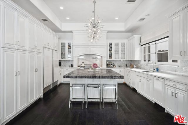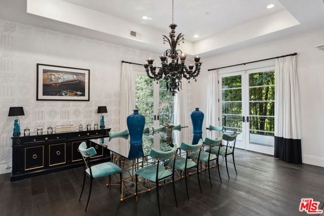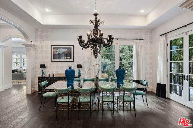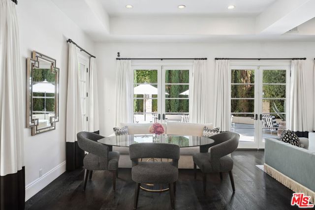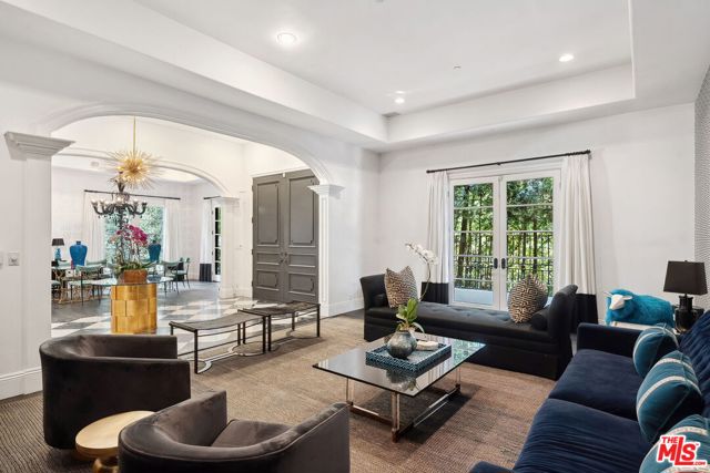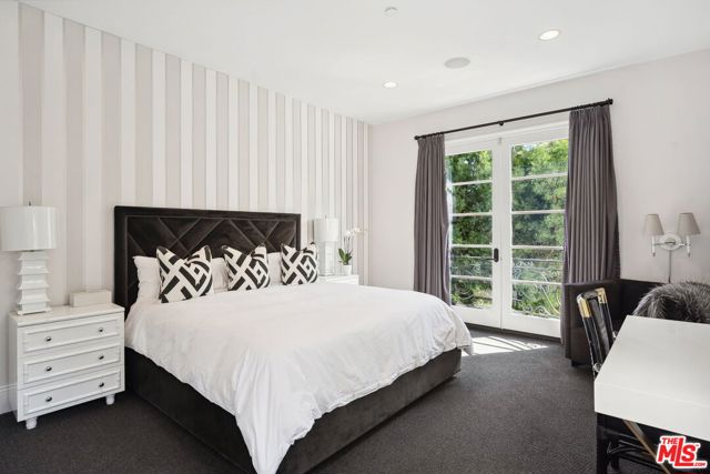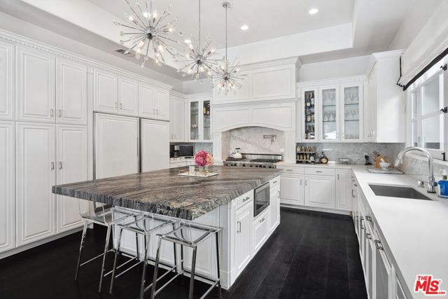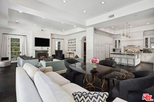 NEW PRICE! UNDER $1000 per SqFt in prime LOWER BHPO! Motivated Seller! ~ CUSTOM INTERIOR DESIGN PERFECTED! IMMEDIATE MOVE-IN MINT CONDITION! Exquisite Beverly Hills Hotel alternative located just seconds from the Iconic hotel and Sunset Blvd. ~ Discover this timeless chic gem professionally designed by Preston Lee, with furniture and art pieces by Jonathan Adler, Slim Aarons, and Fornasetti. This Contemporary Mediterranean w/ OPEN FLOOR PLAN possesses ultra-high ceilings with recessed lighting; surround sound everywhere: upstairs, downstairs, inside and out; hardwood floors and custom crown moldings throughout. The home features 5 Bedrooms, 6 Baths, a gorgeous formal grand entry with black and white marble, formal living room and dining rooms, an entertainer's family room connecting seamlessly to the huge center island Chef's kitchen; all opening out with French doors to your private patio w/ retractable awning, pool, waterfall, spa, built in BBQ and outdoor fireplace. Four bedrooms up including the most luxurious primary suite with fireplace, giant walk in closets, and a stunning primary bath with double vanity sinks, sunken tub and massive shower. Three more spacious en-suite bedrooms w/ balconies along with a spacious gym / dance studio complete the upstairs. Additional outdoor play area with basketball court and trampoline; 3 car garage, 3 interior fireplaces and more. This immaculate one of a kind home must be experienced in person to truly feel and appreciate its custom built quality and incredible design.