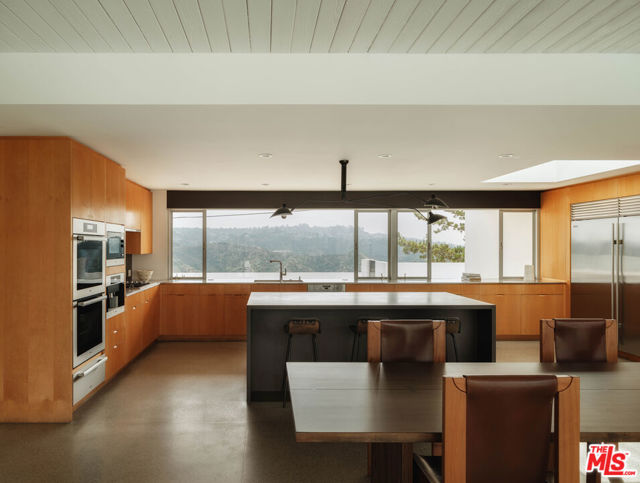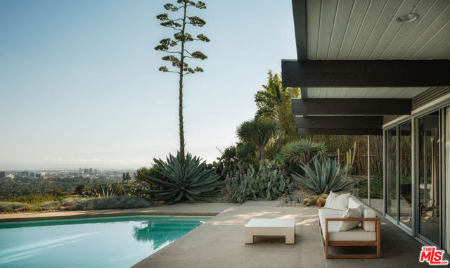 The "William H. Levit House" by Richard Neutra is a quintessential expression of California modernism, framing uninterrupted views from the Pacific Ocean to downtown Los Angeles and the San Gabriel Mountains. Originally completed in 1961, the residence has undergone a series of thoughtful enhancements, first by Marmol Radziner, then a comprehensive renovation by Ronnie Sassoon in 2012 honoring Neutra's original vision while introducing a restrained, contemporary sensibility. Concealed behind gates, the property offers a sense of seclusion and serenity, featuring an attached two-car garage, a sculptural cactus garden, and a pool with jetliner views. Inside, the architecture embraces clarity and function: a refined kitchen, four Carrara marble-clad bathrooms, and three bedrooms, including two generously proportioned suites with dual-sink baths. A rare opportunity to acquire a masterfully preserved Neutra residence, meticulously preserved and just moments from the heart of Beverly Hills.