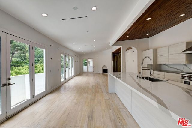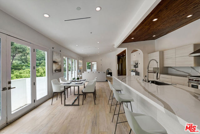 Nestled in the prestigious Beverly Hills Post Office, this expansive 6,367 sq ft residence offers 6 bedrooms and 5.5 bathrooms, blending refined elegance with modern comfort. Enjoy convenient access to world-class shopping, dining, and entertainment in Beverly Hills' Golden Triangle, as well as hiking trails in nearby Franklin Canyon. Thoughtfully designed for both entertaining and everyday living, the home boasts high ceilings, multiple balconies and patios, and an open-concept living/dining area with a fireplace that flows seamlessly to the chef's kitchen. Here, top-of-the-line appliances, French doors, and breathtaking canyon views create a true culinary haven. The oversized primary suite features its own fireplace, French doors opening to the backyard, and a spa-like bathroom with a separate soaking tub and an oversized shower. Additional highlights include a family room, an elevator, and a 3-car garage. Outdoor spaces are equally impressive, with a spa, patio area, dedicated bathroom, and multiple terraced hillside sitting areas for taking in the canyon vistas. A separate/adjoining 2-bedroom, 2-bathroom suite with living room, fireplace, and kitchenette offers flexibility for guests, extended family, or staff quarters. An unmatched blend of scenic beauty and refined design. To help visualize this home's floor plan and to highlight its potential, virtual furnishings have been added to photos found in this listing. Per tax records 5BR/7BA. Property functions with 8BR/7.5BA. Please do not park in shared driveway or block driveway access.
