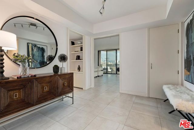 This sensational one-of-a-kind residence presents the largest plan 2-bedroom plus den corner condominium in the prestigious IV Seasons Condominiums, along a tranquil tree-lined street in Beverly Hills. A true masterpiece of modern design, every inch of this home is meticulously appointed with fine finishes. Expansive floor-to-ceiling windows flood the space with natural light, offering 280-degree panoramic views of the iconic Hollywood Hills to Beverly Hills, and Eastern sunrises. White large porcelain tiled flooring throughout, and sleek white built-in library cabinetry create a sophisticated and open atmosphere, while spacious terrace enhances the seamless flow between indoor and outdoor living. Formal Dining room and the large galley kitchen is a striking example of contemporary elegance, featuring top-tier appliances, modern cabinetry, and a sun-drenched breakfast room that bathes in radiant morning light, with views of lush park greenery and the city's skyline. The primary suite is a luxurious retreat, complete with a custom walk-in closet, a soaking tub, and an oversized glass-enclosed shower, creating a spa-like sanctuary. The spacious second bedroom suite is equally impressive, featuring a custom closet and a stylish en-suite bath. The versatile den provides an ideal space for a home office, media room, or additional living area, and a fully redesigned laundry room offers ultimate convenience. Residents enjoy unparalleled luxury amenities, including 24/7 doormen, valet parking, a newly renovated pool and spa, gym and storage. Situated in the heart of Beverly Hills, this residence offers easy access to Westside best shopping, dining and entertainment.