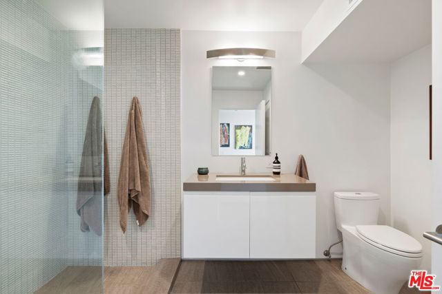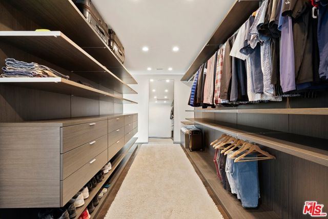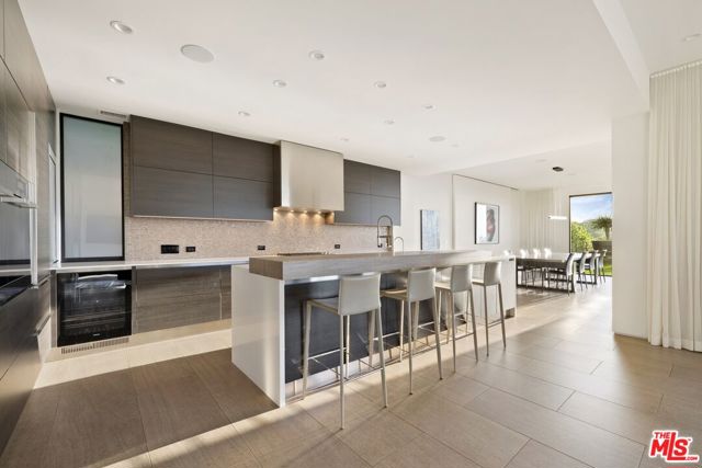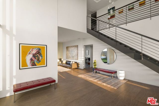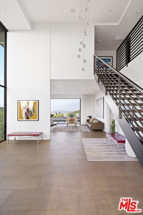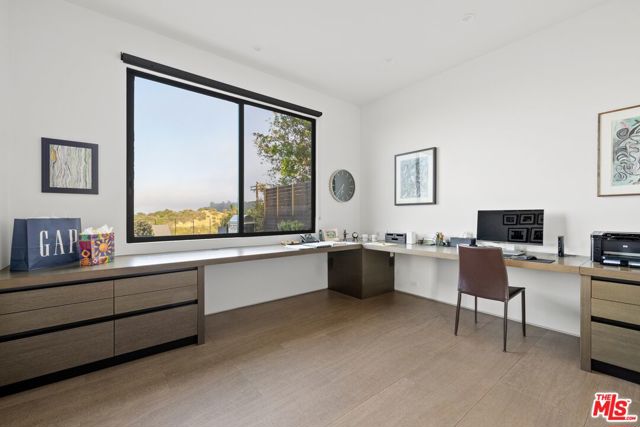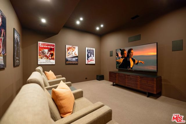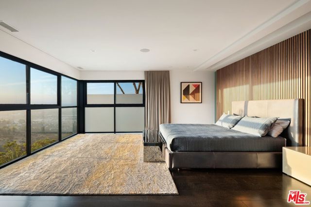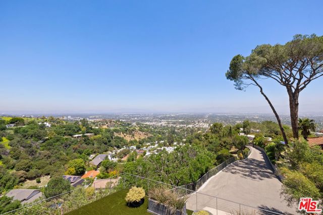 Tucked away on a beloved, private road where turnover is low and some residents own multiple homes, this fantastic refuge promises riveting panoramic views at every moment and peaceful comfort above it all. From sunrise to sunset and into calm California nights, unobstructed vistas inspire creative thought and invoke a passion for this rare way of life in harmony with its natural surround. Sited up a long private driveway with parking for numerous vehicles, the home is meticulously appointed with beautiful drought-tolerant landscaping including whimsical olive trees and carefully curated cacti. Guests arrive through a pivot door as floor-to-ceiling panes of glass welcome natural light into the double-height foyer. Entertain in style with a seamless indoor-outdoor vibe as pocket doors fully retract in the living room to provide a casual, elegant flow from east to west. A state-of-the-art Arclinea kitchen is equipped with Miele ovens and appliances as well as a Wolf cooktop, custom Sub-Zero refrigerator, and a generous waterfall island with breakfast bar ledge. The nearby formal dining room, also with retreating doors, is appointed with an impressive floating wall close-off to add intimacy to parties and guide the movement of attendees. Upstairs, the primary suite is magnificent, complete with a sumptuous bath with floating dual-sink vanity, separate shower, toilet room, and centerpiece soaking tub aside walls of sliding glass that open to reveal a private patio with fire pit. A large walk-in closet has custom built-ins to please any modern fashionista. Secondary bedrooms showcase striking mountain and valley views, and bathrooms are dressed in white Italian lacquer cabinets topped in soothing gray Silestone. Screen films in the media room with its plush double-pad cushy floor, or work and study in the roomy office with built-ins and picture window. Downstairs, discover a spacious guest quarters with private entrance and direct access to the home's expansive driveway and motor court. Here, a variety of possibilities and configurations abound, from yoga, massage, and wellness to a potential recording studio or artist's haven! Complete with en-suite bath, separate HVAC, and walk-in closet, this partitioned space can also be utilized for passive income. Outside, there are multiple lawns, a saltwater pool and spa, and a sprawling lounging deck from which the back of the Hollywood Sign's H can be seen as well as the San Jacinto Mountains 100+ miles away! Enjoy close proximity to hiking trails including Dixie Canyon Park, centrally located just moments to the high fashion of Rodeo Drive or the boutique charm of Studio City. Welcome to a fresh, coveted lifestyle relished from this singular viewpoint in a world-famous locale just off of Mulholland Drive. Also available fully furnished, including most of the artwork (negotiable; inquire for details).